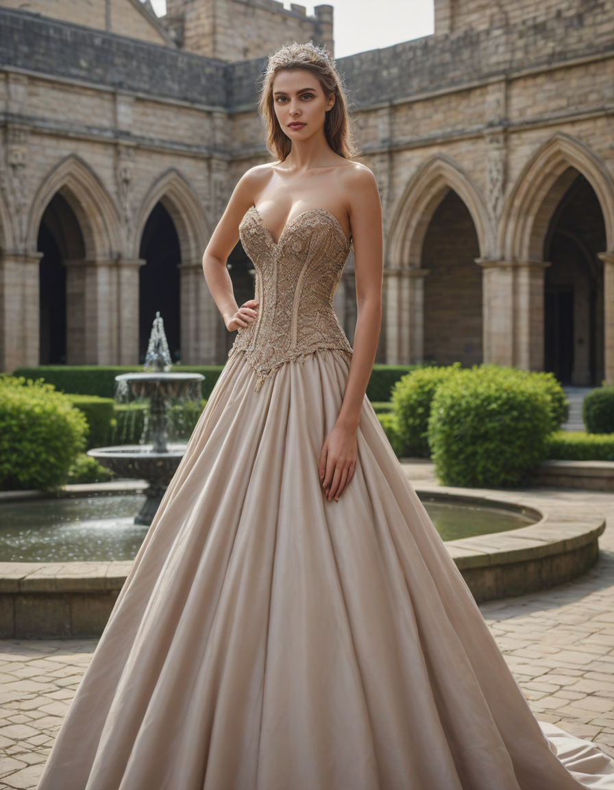 Wide Skirt, wide ballgown hem, a line skirt, petticoat skirt, , looking at viewer, tall woman, excessive cleavage, low neckline, revealing chest, revealing cleavage, cleavage-baring, revealing, excessively revealing, very revealing, lowcut, lowrise,