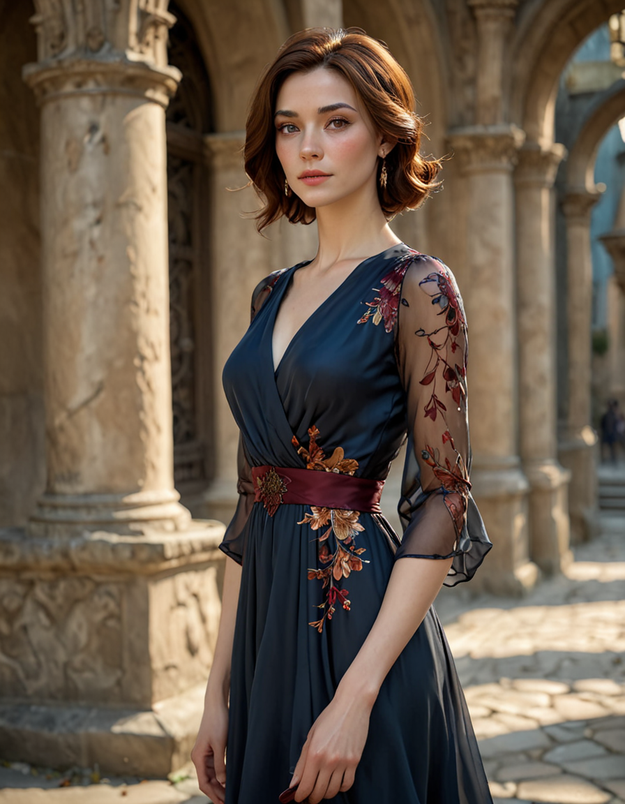 plain cape, heavy fabric, stiff draping→billowing silk cape fluttering gracefully