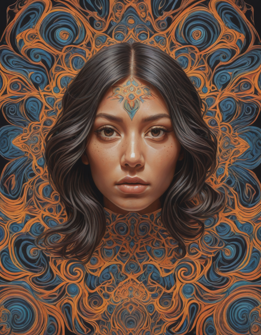 psychedelic trip, mesmerizing swirls, kaleidoscope portrait