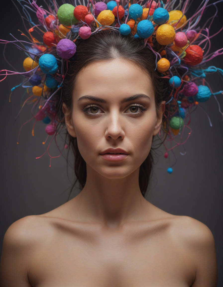 highly-detailed-breast-texture, pronounced-cleavage-detail, voluminous-bust-appearance, tranquil lake, Low-Key Lighting, colorful abstract art, Glistening in the light of a thousand candles, illuminated