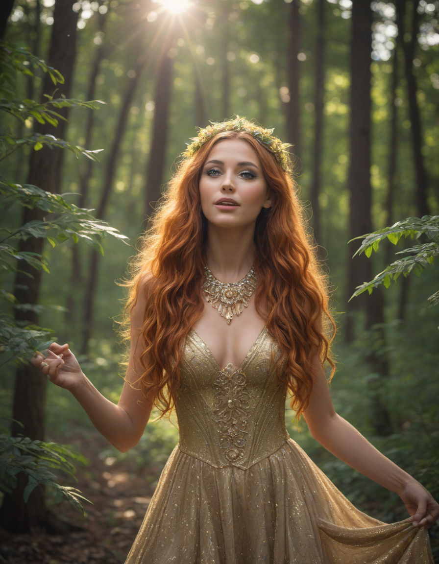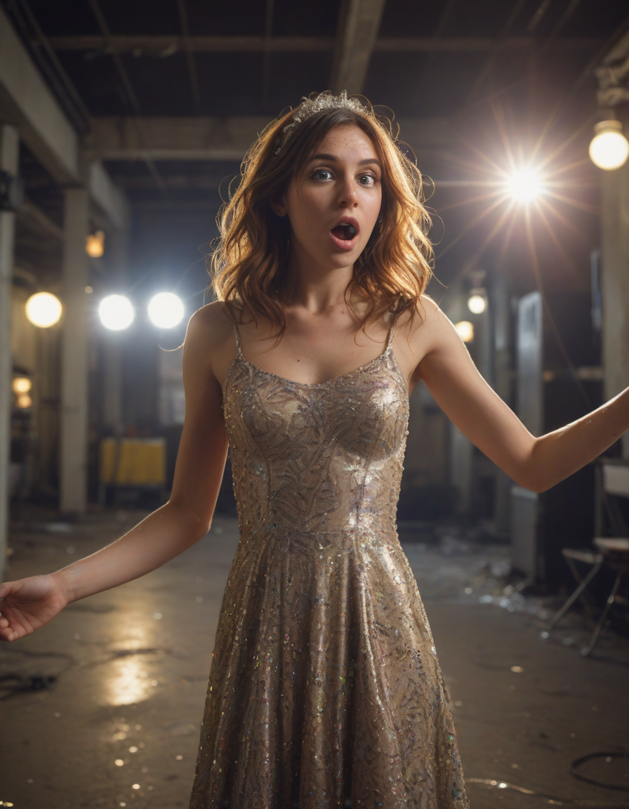 dancing, lens flare, decorated in sugary glitter, surprised