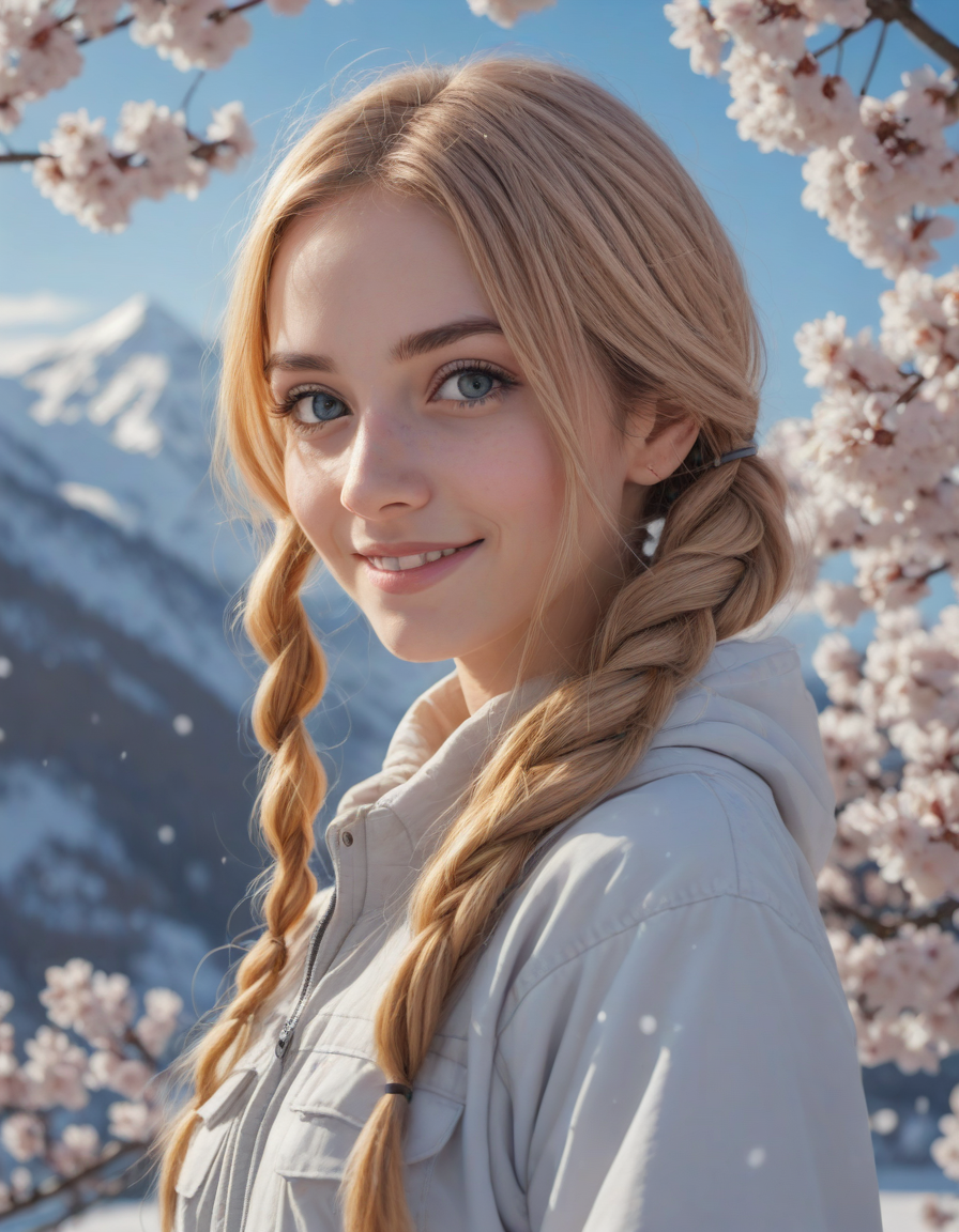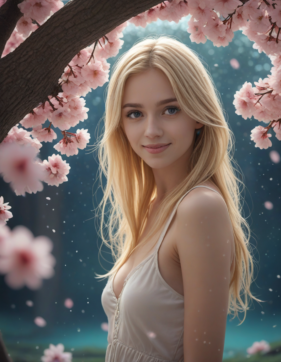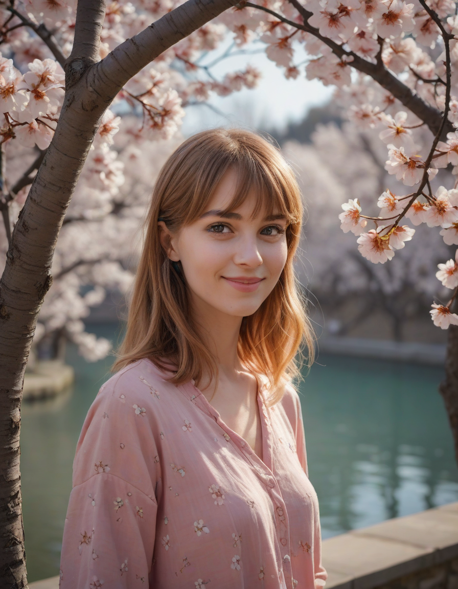 minecraft, smiling faces, Eyes glinting with humor, Blossoming cherry trees, petals falling like snow