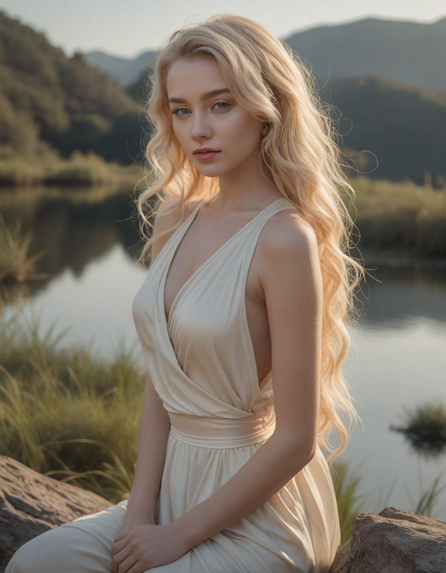 Determination fueling, elegant, Marilyn Monroe-inspired cocktail dress, Soft morning, Eyes locking in an intense, passionate gaze, Passionate, alien, vengeful spirits, vibrant, glowing, and healthy skin, clear