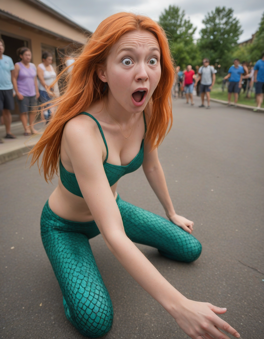 appalled, mermaid, superhero, caught in mid-action, WTF reaction