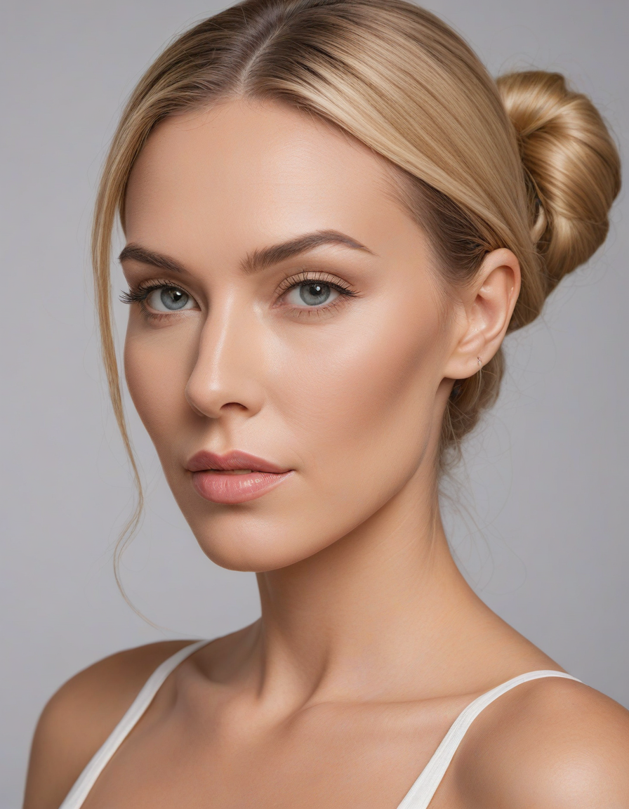 tall woman, Lip fillers, thick full lips, enhanced lip volume, accented cupid's bow, Rhinoplasty, refined nose shape, straightened nasal profile, facial symmetry, Botox injections, smoothed facial lines, reduced wrinkles, youthful appearance, Cheek fillers, pronounced cheekbones, sculpted contours, lifted cheeks, brightened eyes, reduced under-eye bags, rejuvenated area, Liposuction contoured shape, reduced excess fat, sculpted physique, Dermal fillers, restored volume, smoothed texture, diminished lines, strengthened definition, balanced proportions, enhanced jawline, Facelift, tightened skin, reduced sagging, improved skin tone, reduced imperfections, enhanced clarity, Blepharoplasty, Reduced puffiness, restored youthful eye contour, Enhanced chin shape, improves facial harmony, strengthened jawline definition, symmetry facial features, golden_ratio