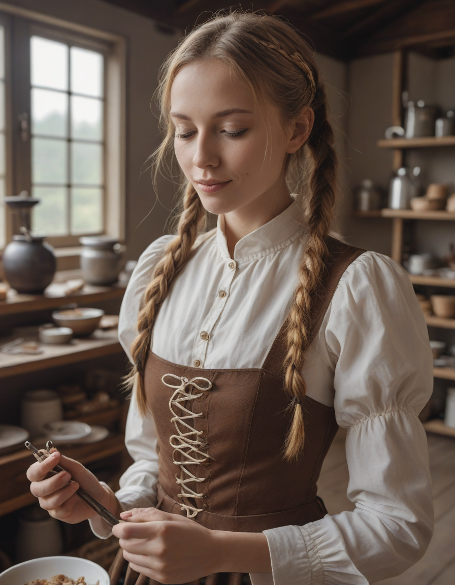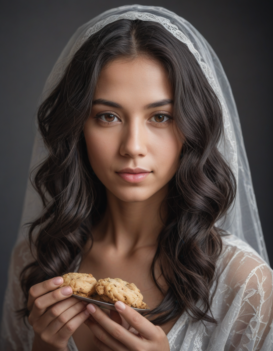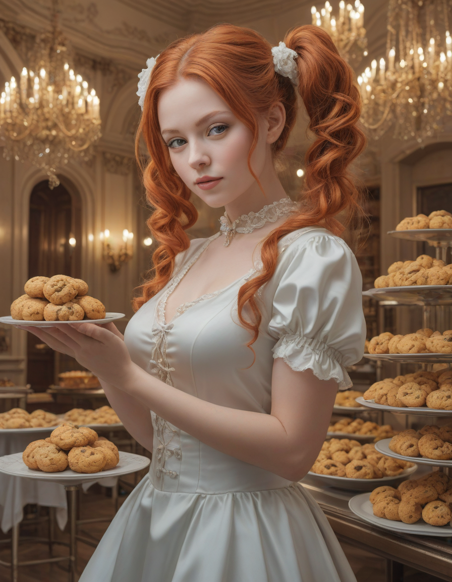flawless, porcelain-like complexion, acting smug, Smelling the fresh baked cookies, magical energy swirling around