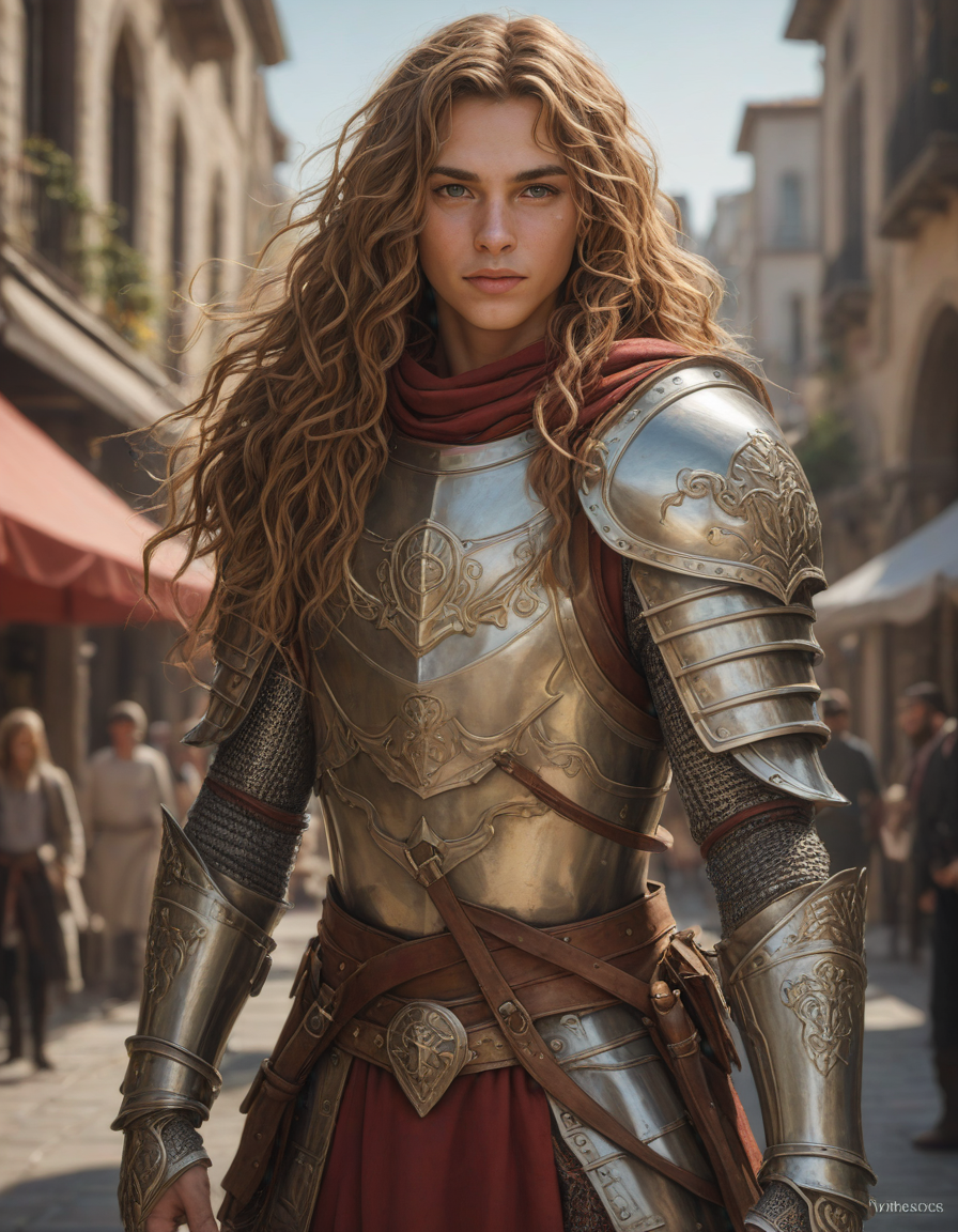 lionhearted knight, cheerful, piercing gaze