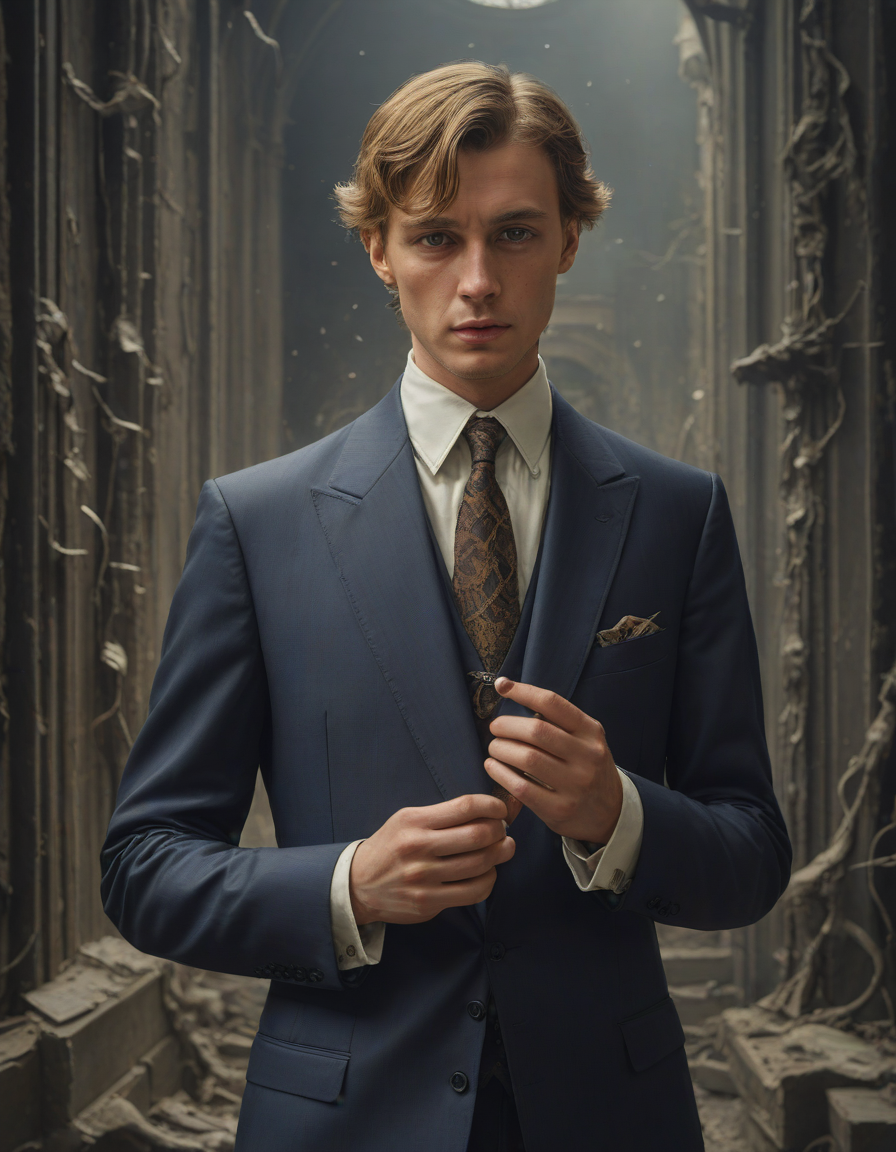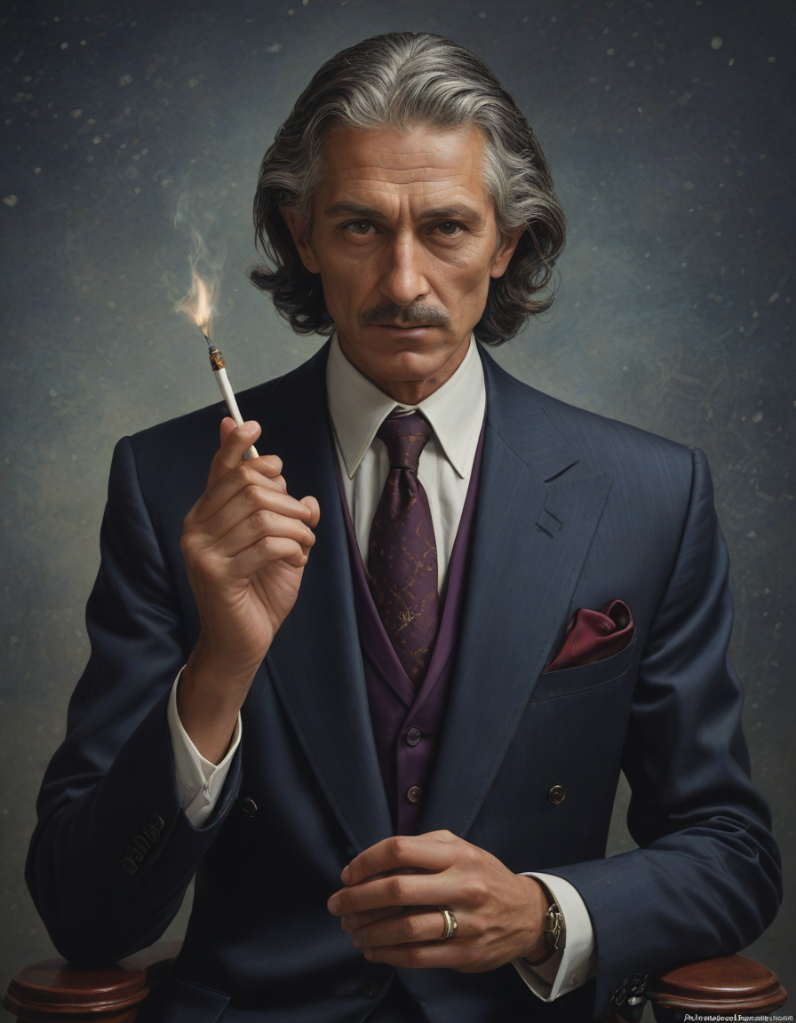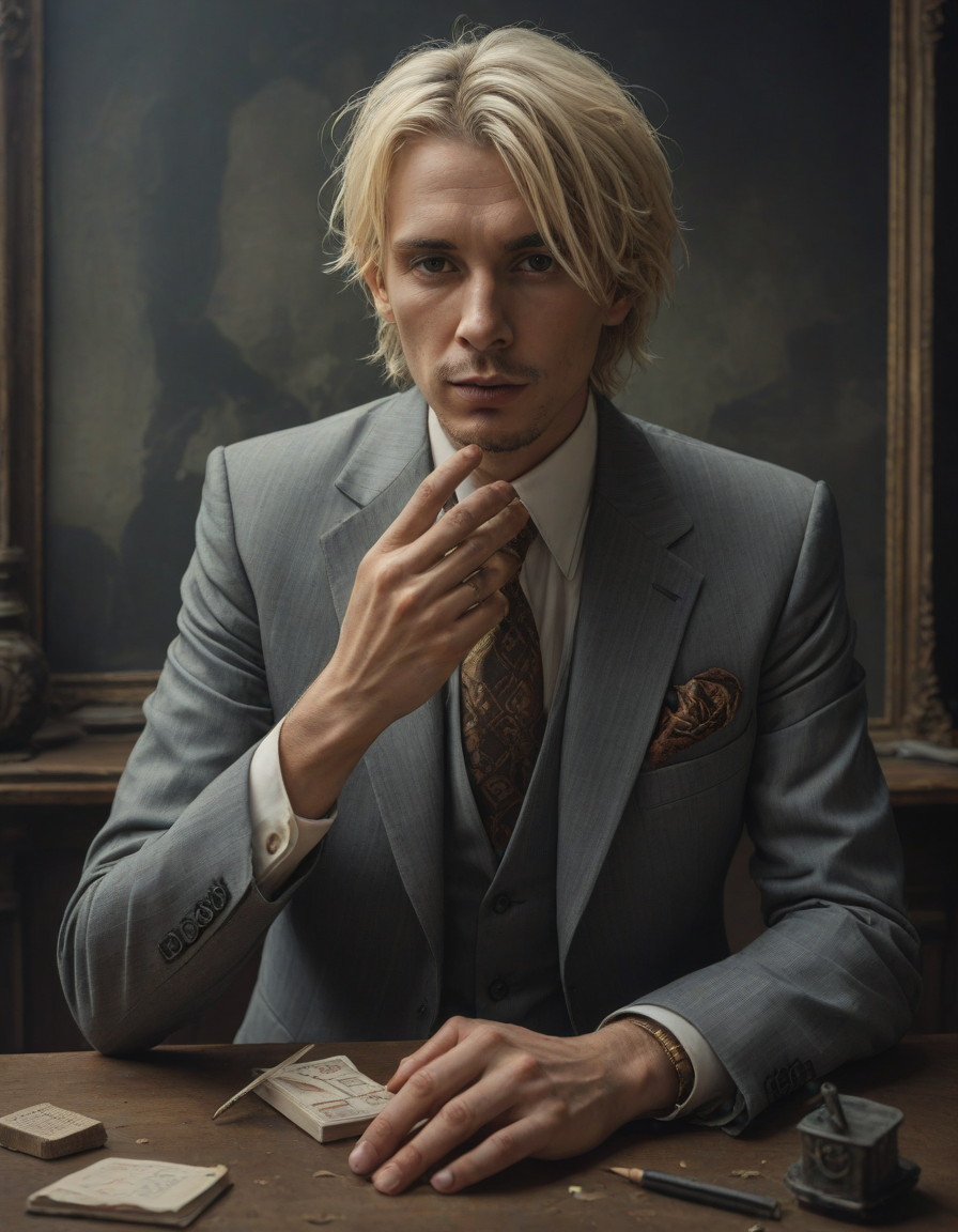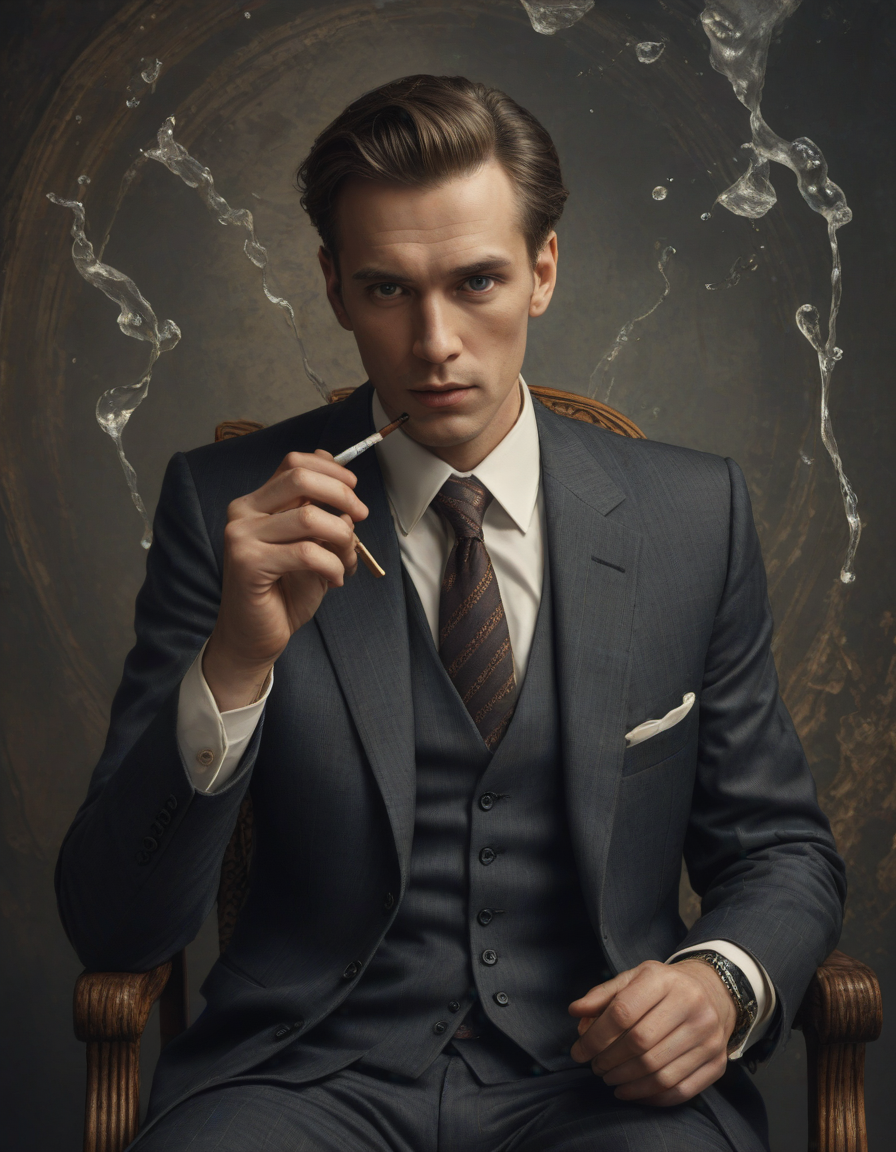 nervously wringing damp trembling hands, in a suit, epic composition, old cigarette ad, Prismatic renaissance