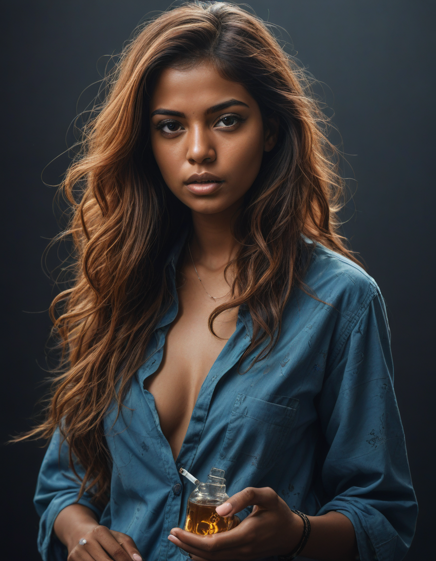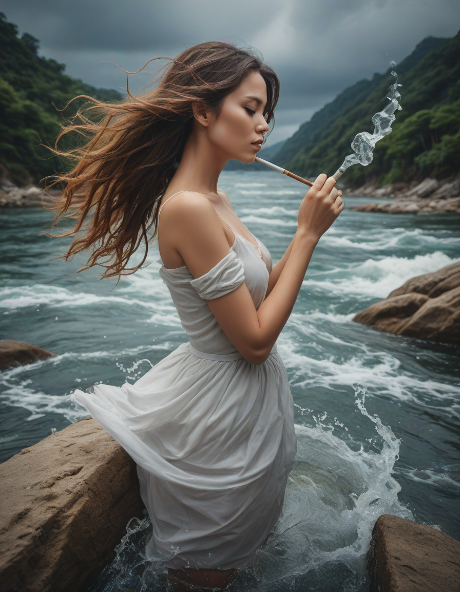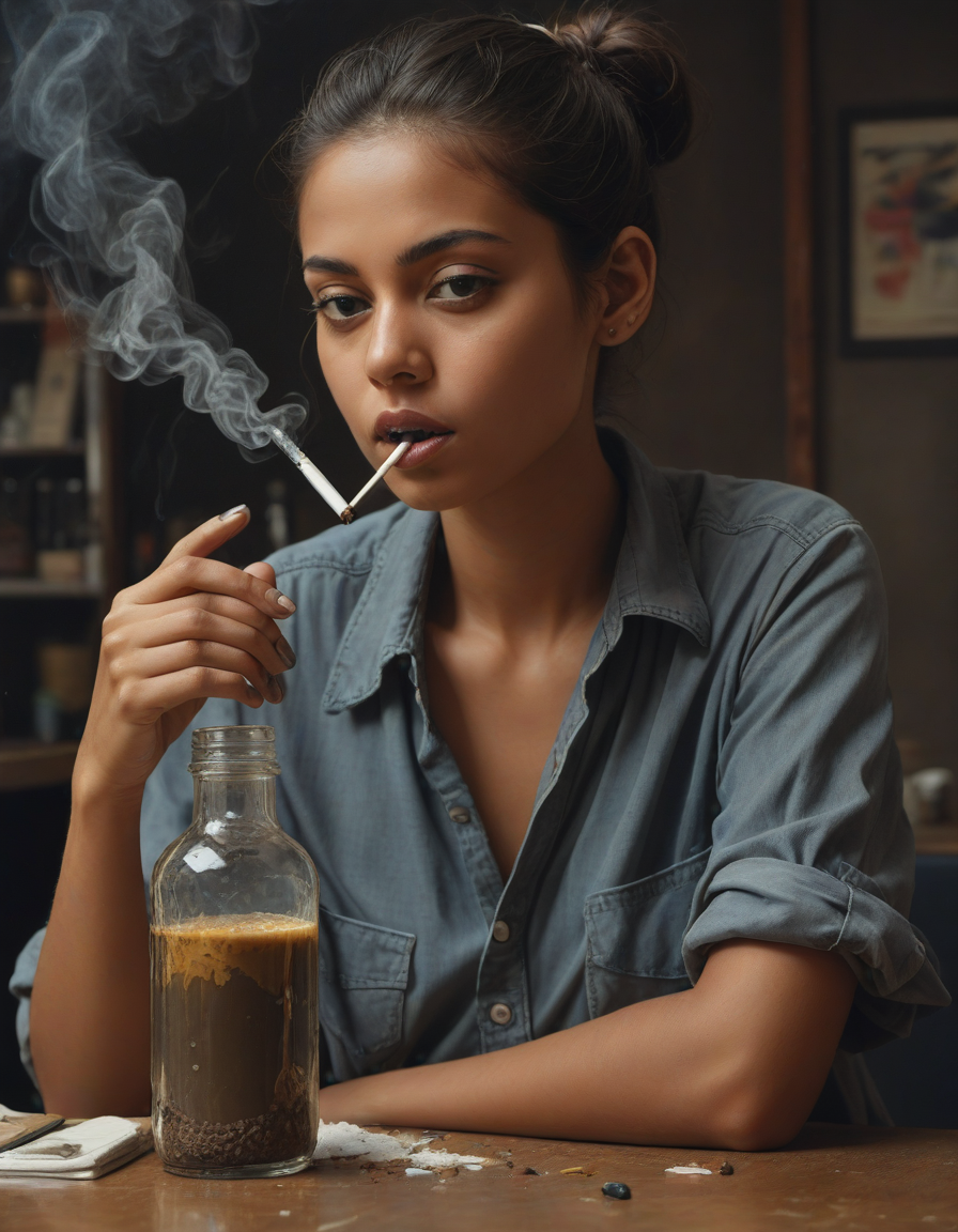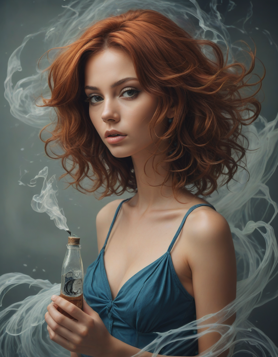 a storm trapped in a bottle, Vivid abstract painting, vibrant dream, realistic, smoking a cigarette looking cool