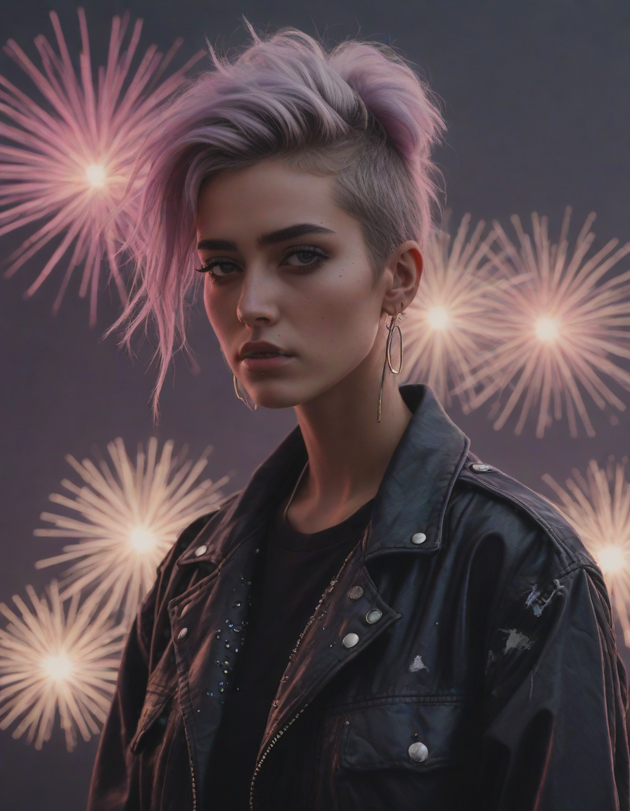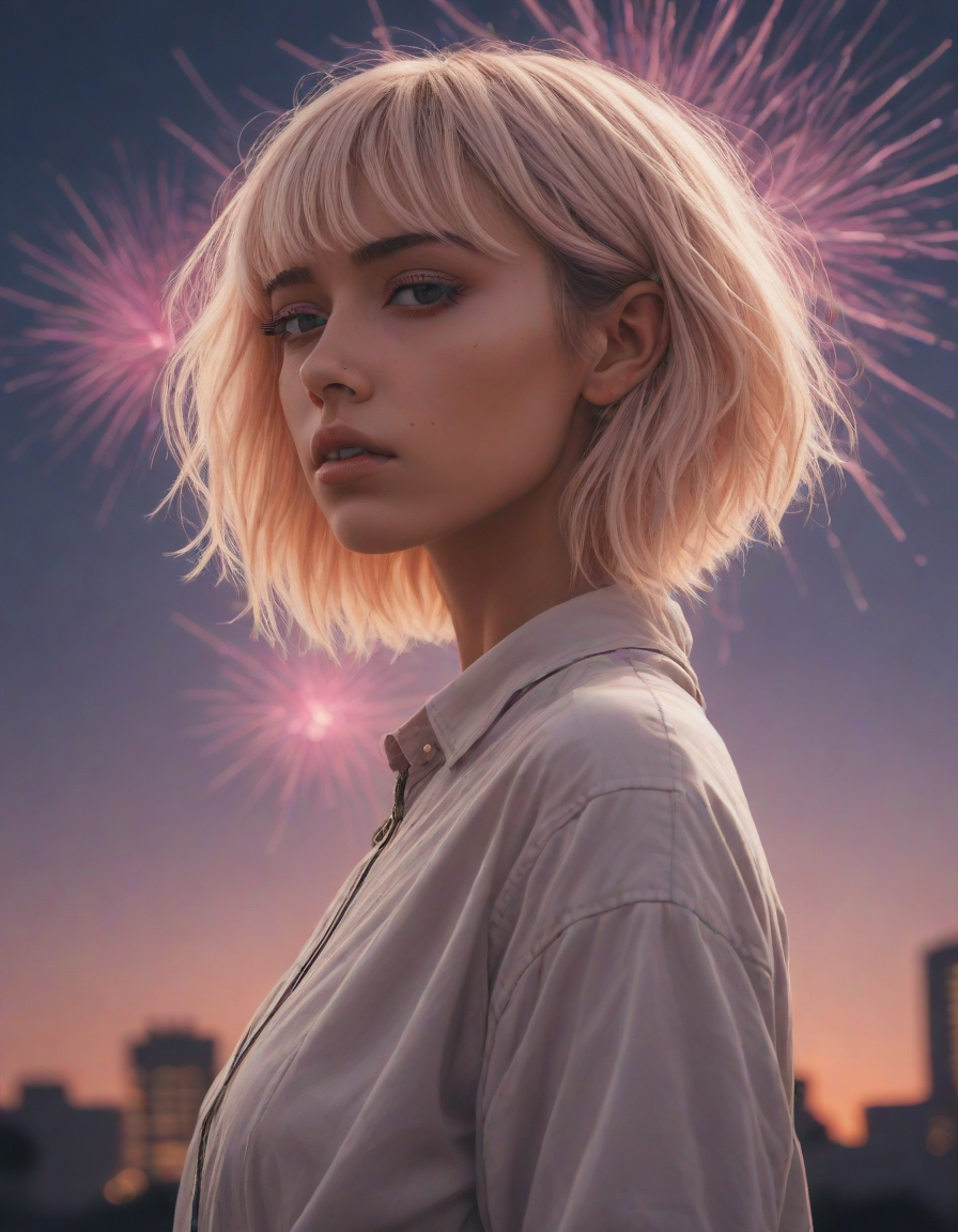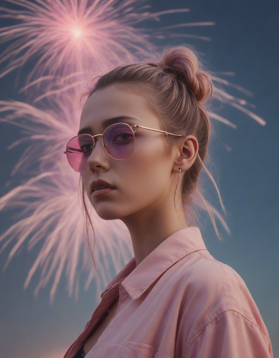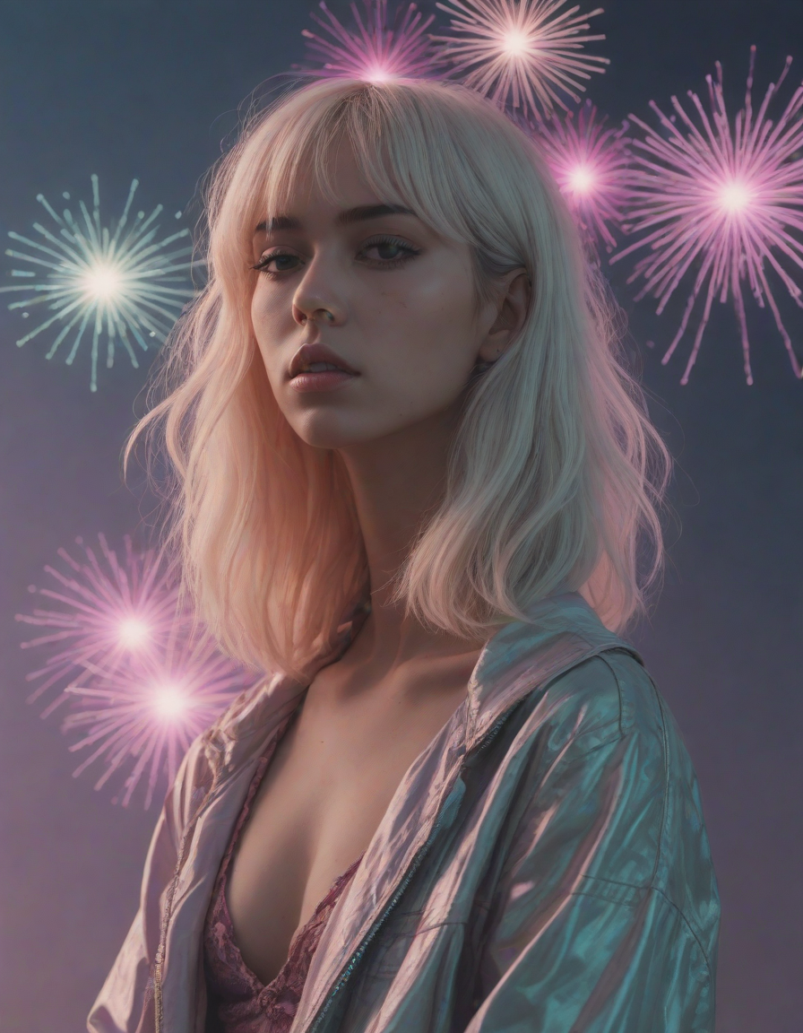 fireworks, looking contemplative, Edgy fashionista, Blinding, vaporwave aesthetic