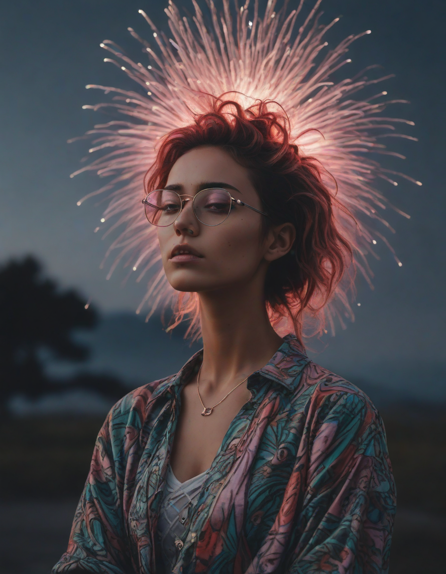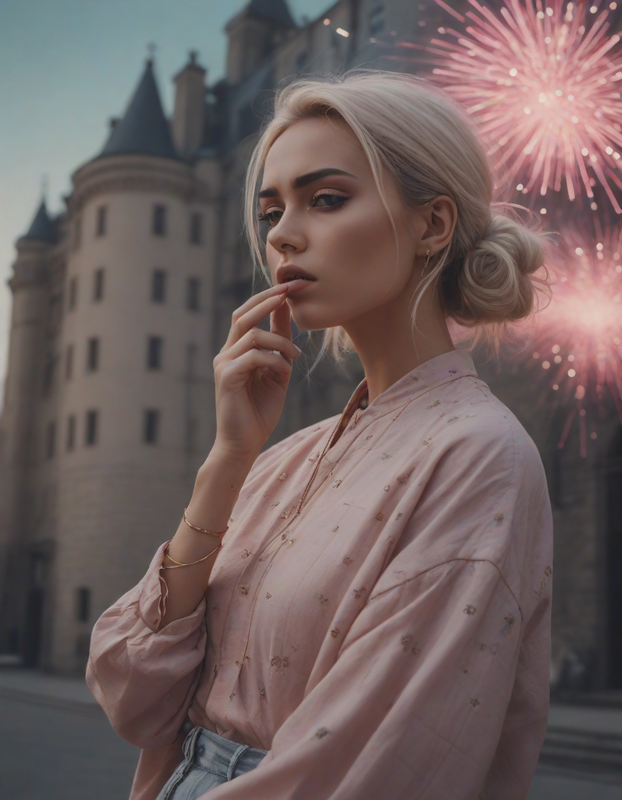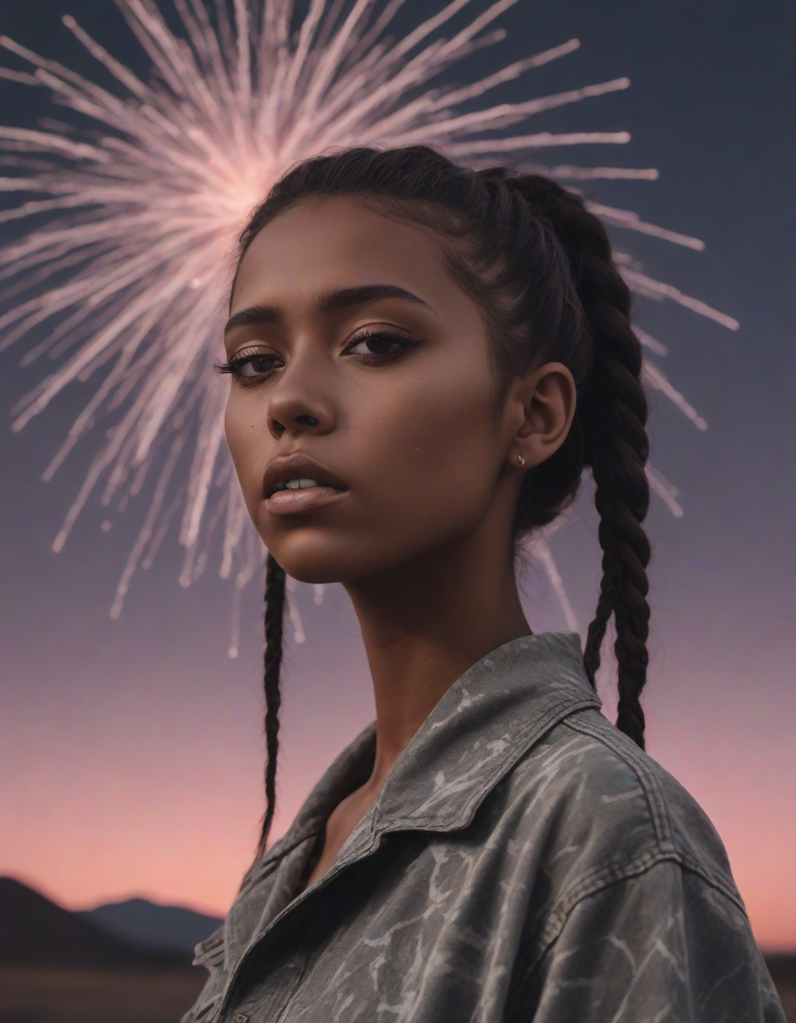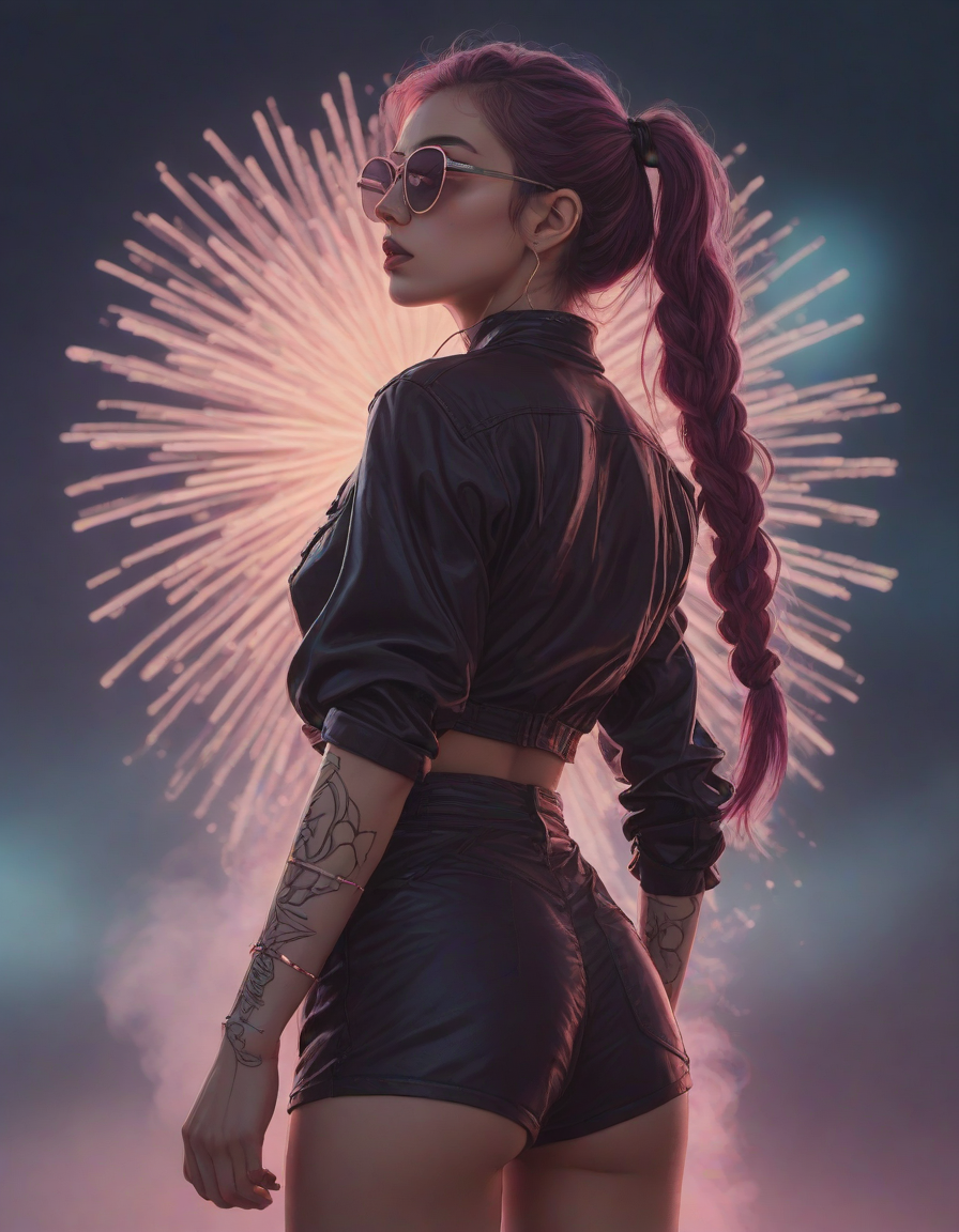 fireworks, looking contemplative, Edgy fashionista, Blinding, vaporwave aesthetic