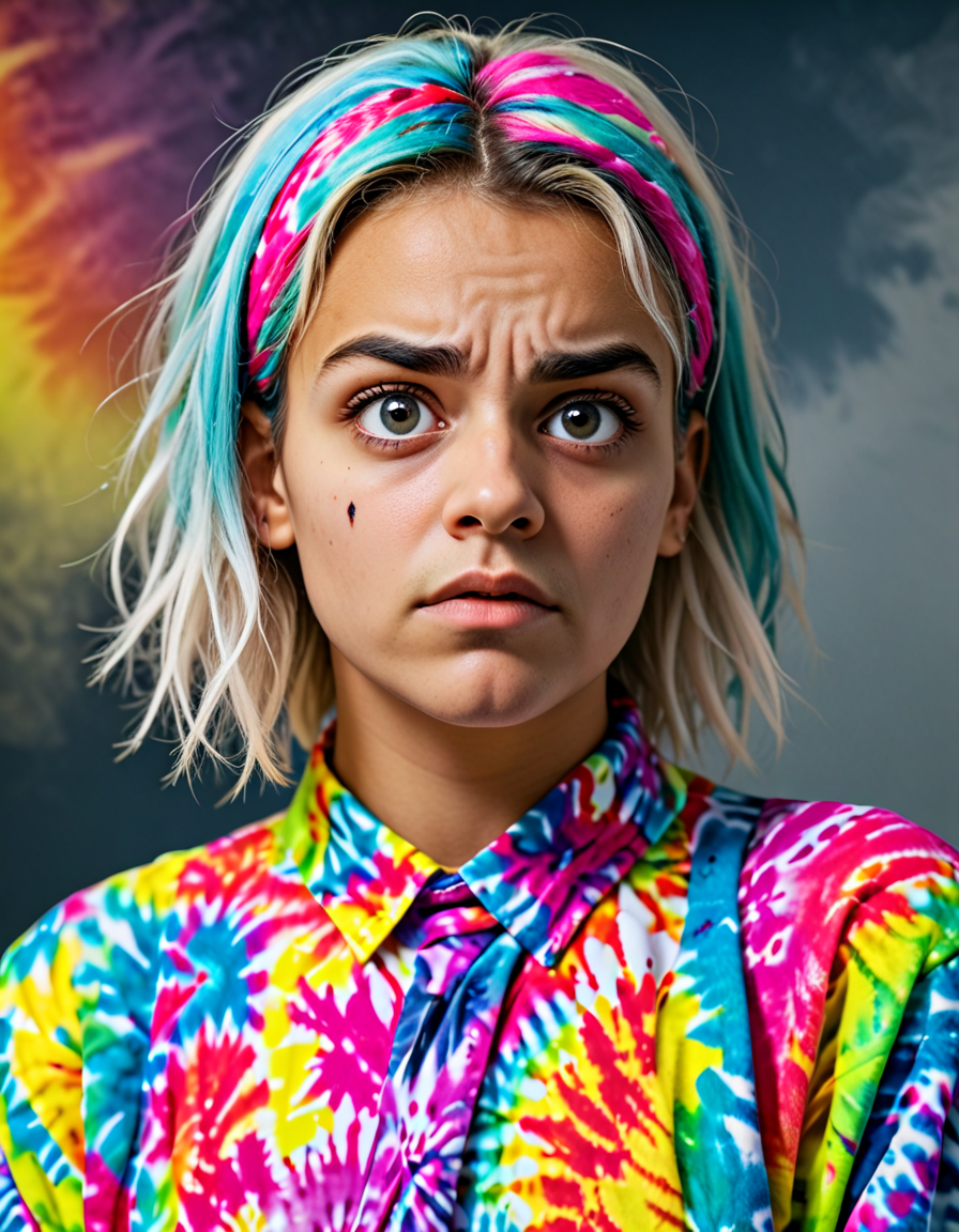 wearing colorful tie-dye, bewi... (2 loras merged)
