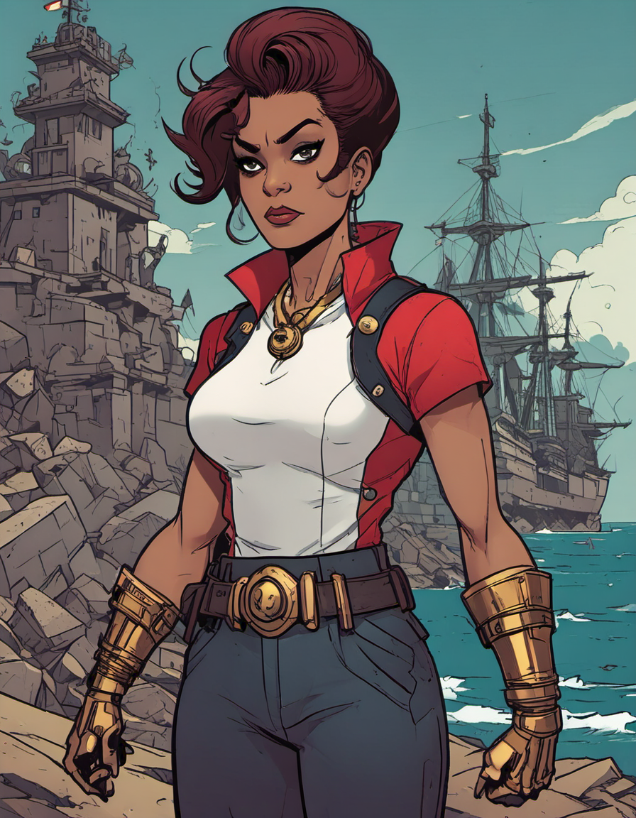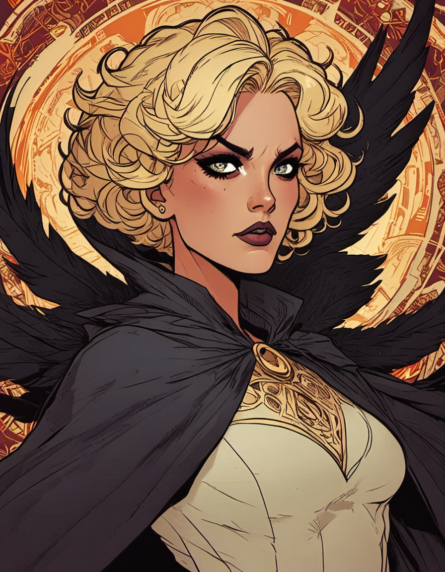 realistic oil painting, detailed 3d render→comic book style with bold outlines and flat colors