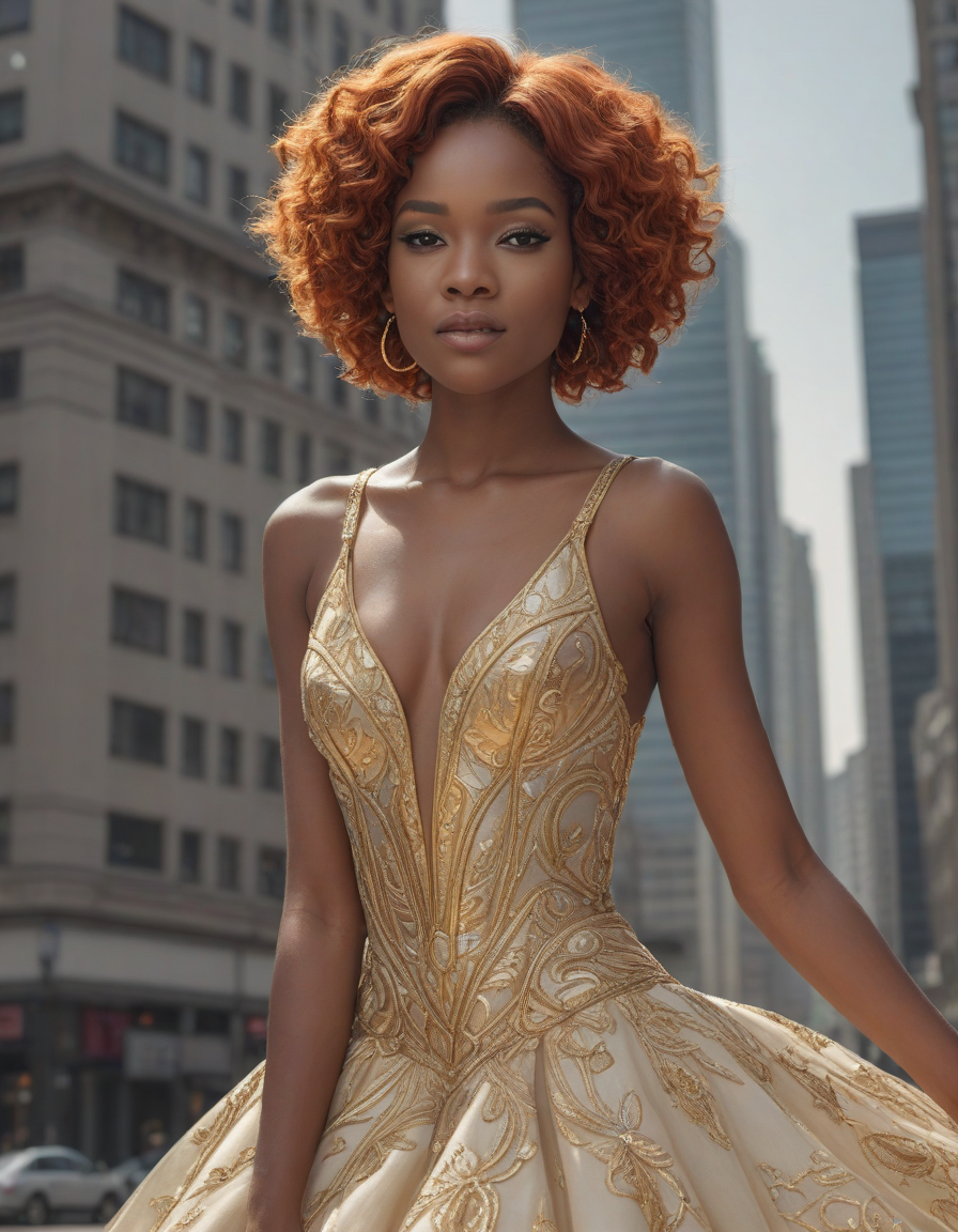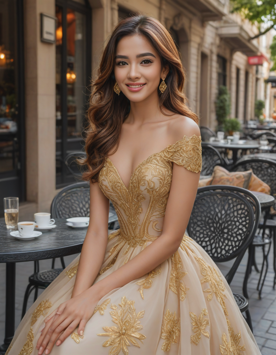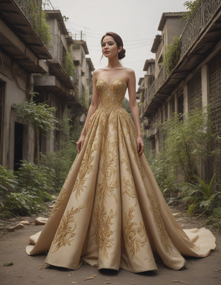 ornate, gold-trimmed ball gown... (3 loras merged)