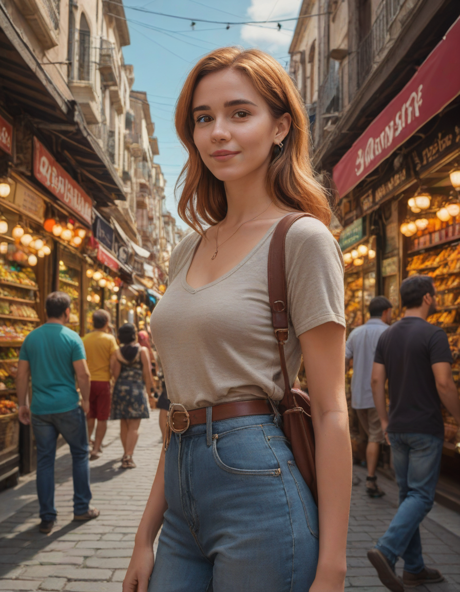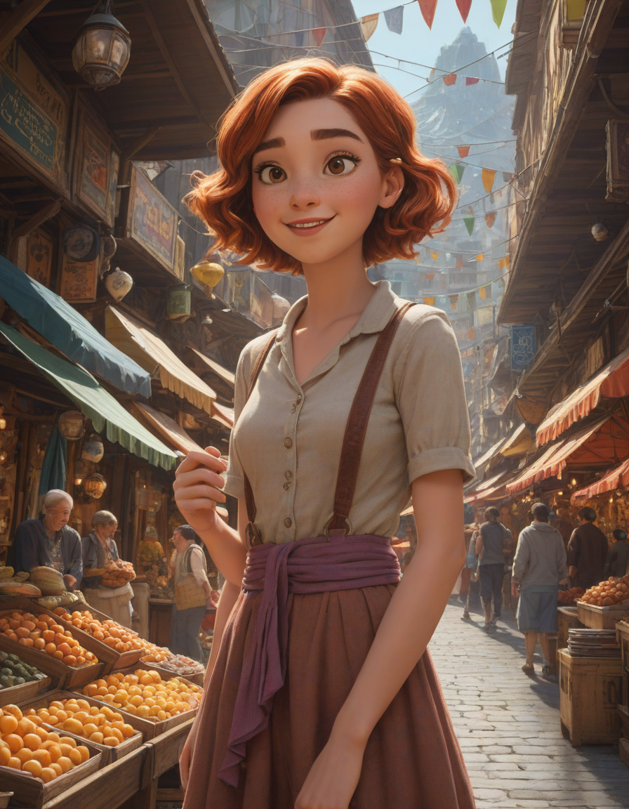 pixar-style, Glistening, snickering, strolling through a bazaar