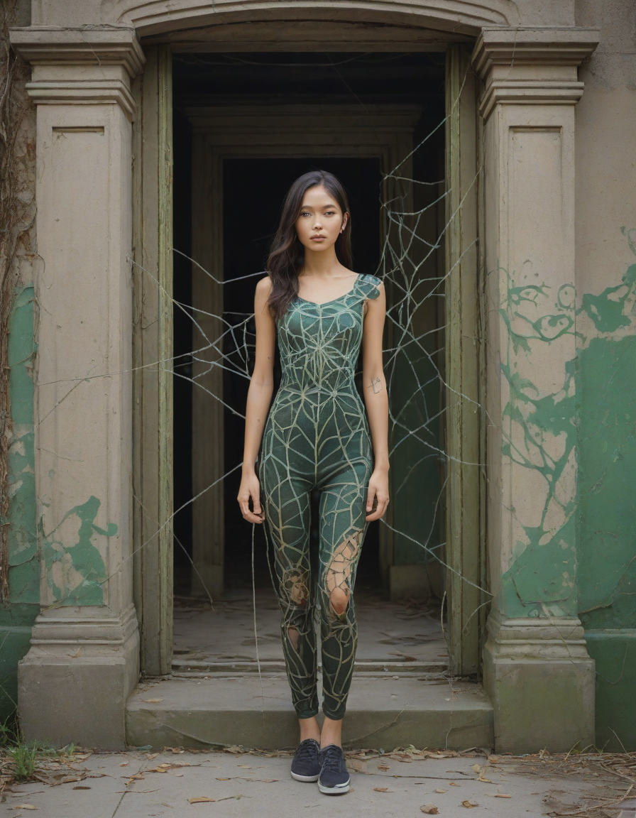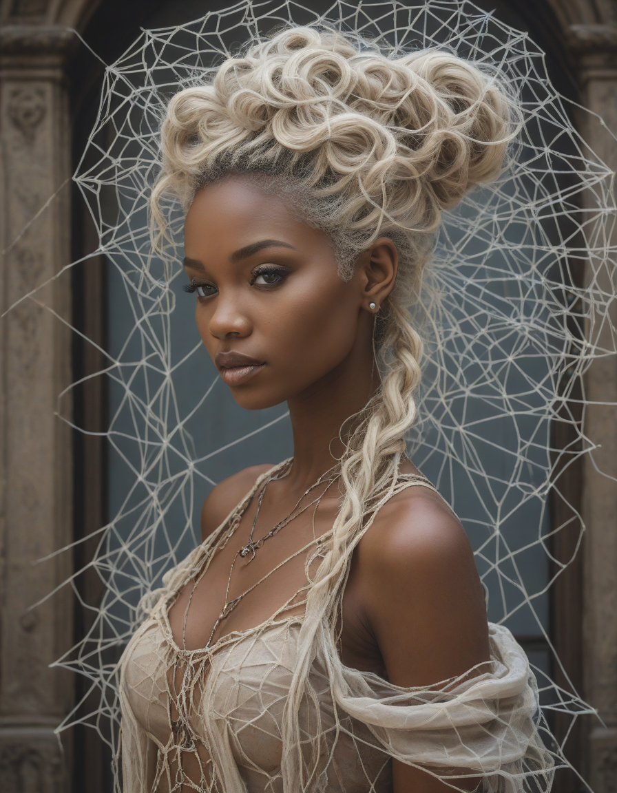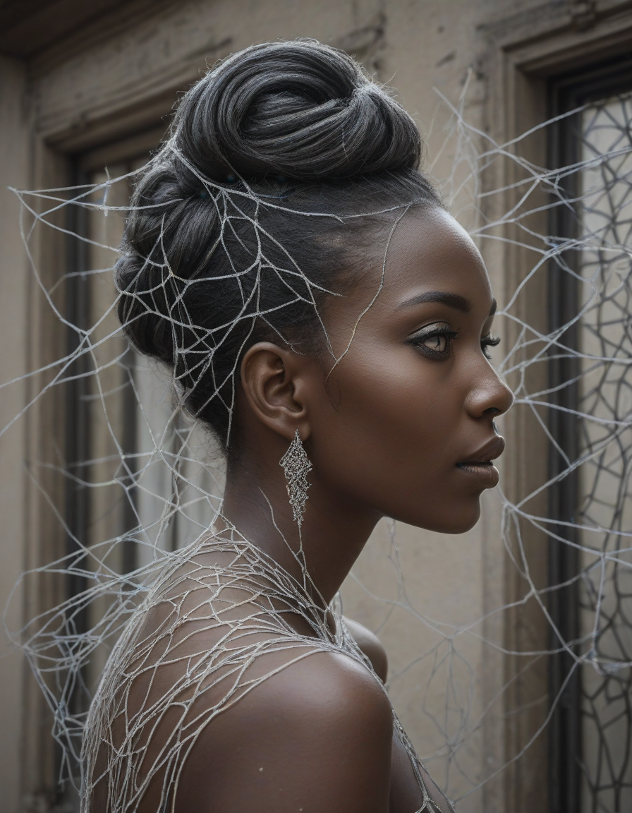 admiration, stencil, mysterious enchantress, Gossamer cobwebs adorning an abandoned mansion