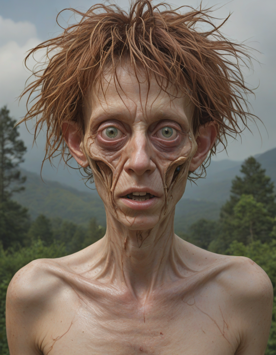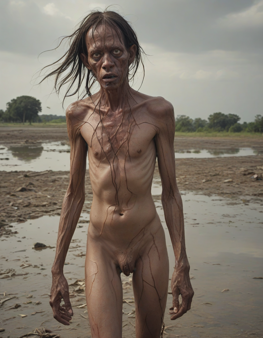 Ugly, anatomical nonsense, asymmetrical face, disfigured, deformed, gross proportions, unattractive hair, malformed limbs, mutation, mutilated, weird body, kicking, high-fashion, lost in a trance, eyes glued to the horizon
