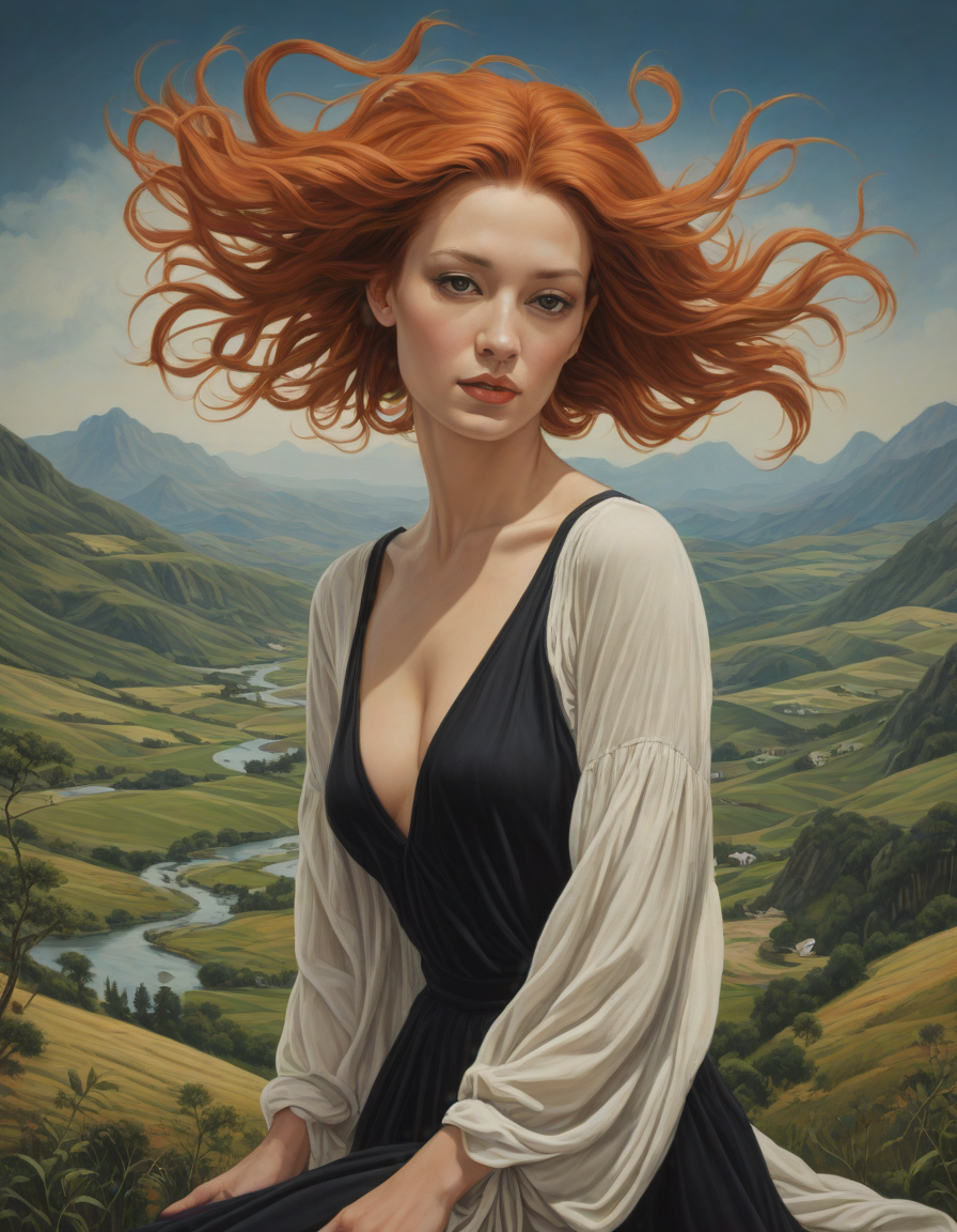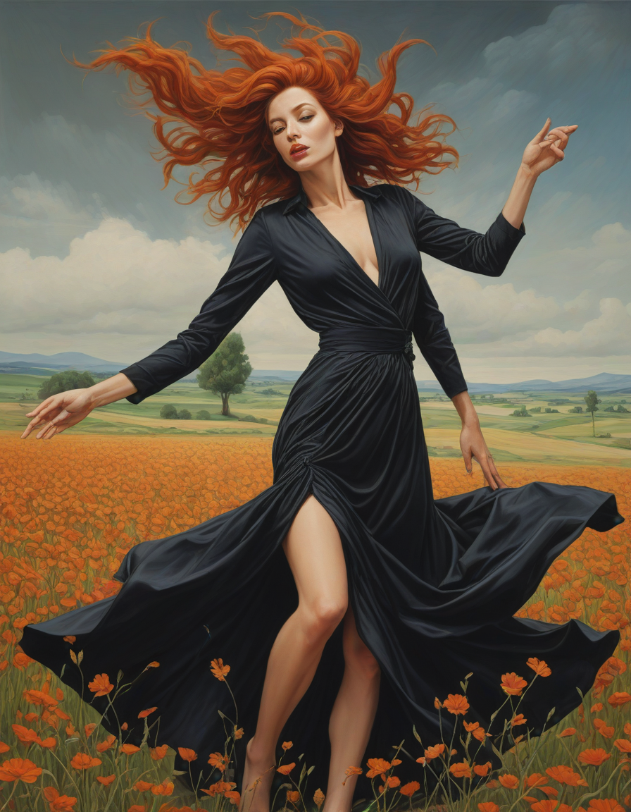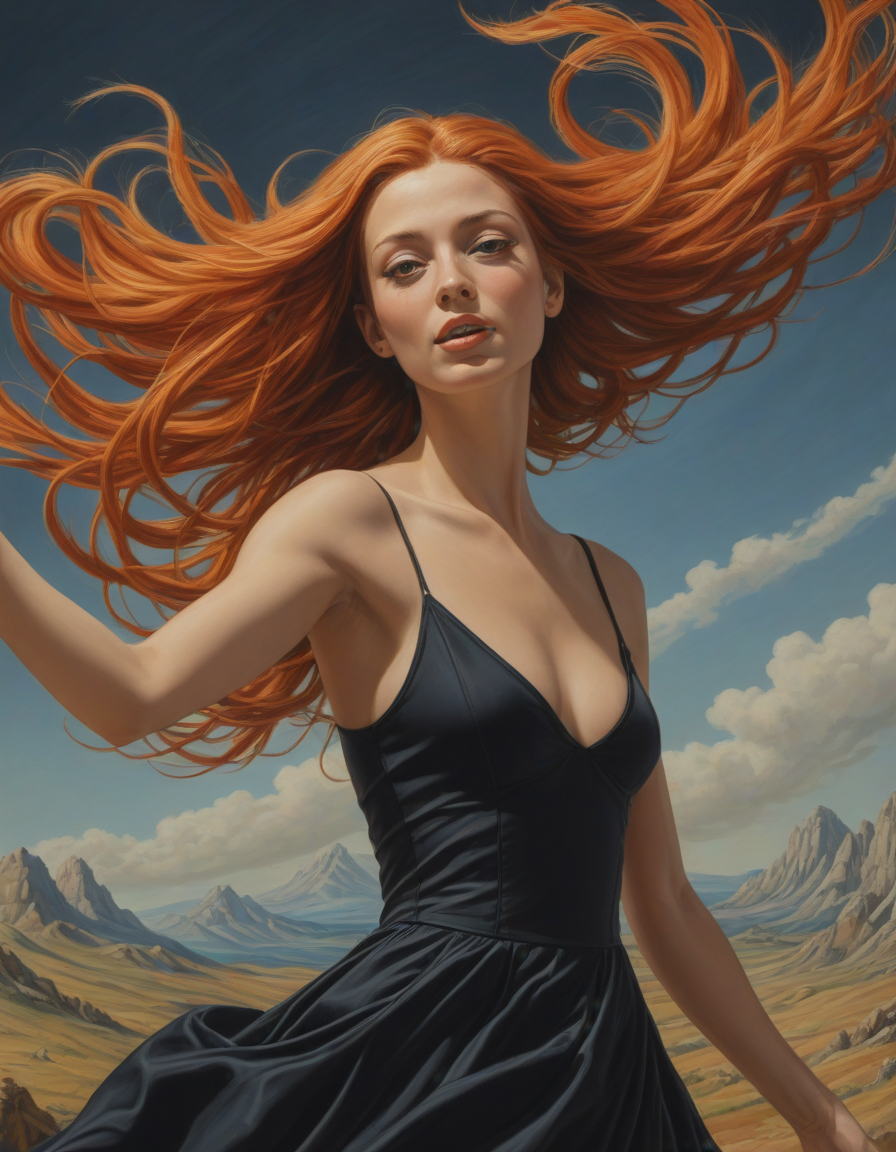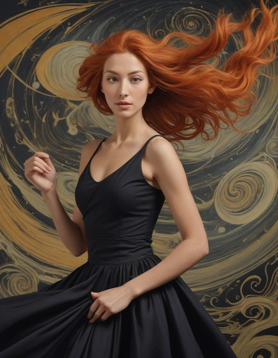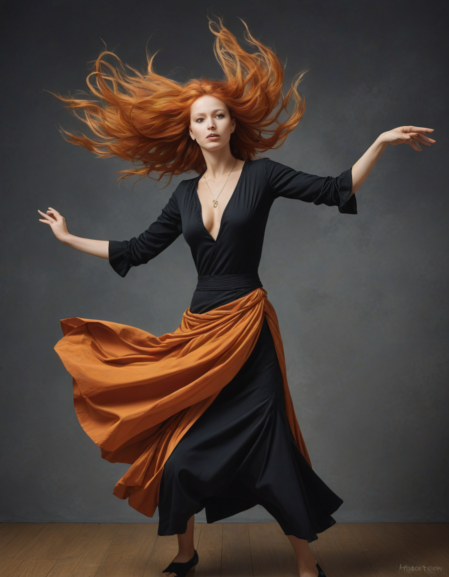 dancing, Gaia from Italy, medium chin-length wild auburn orange hair