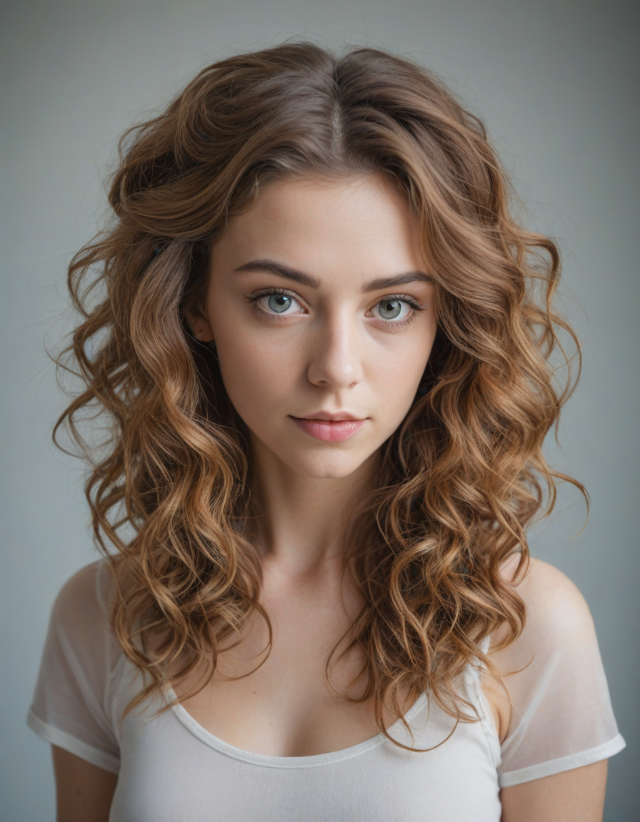 hair up, crystal clear eyes
