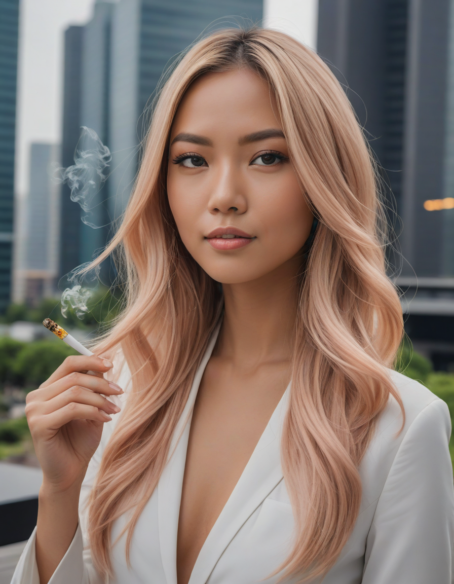 feeling pure ecstasy, scenic mesa, attractive, sparkling, resolute, delicious, striking a confident pose, smoking a cigarette looking cool