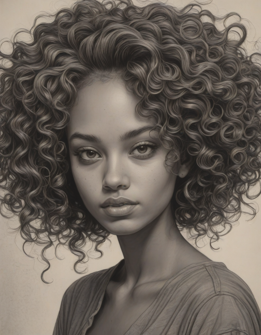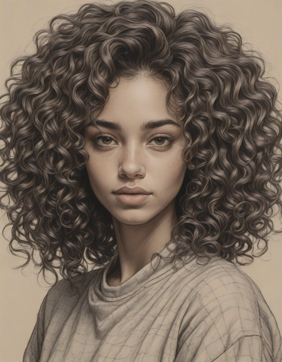 voluminous, curly locks, charcoal sketches on textured paper, resplendent intelligence, aesthetic