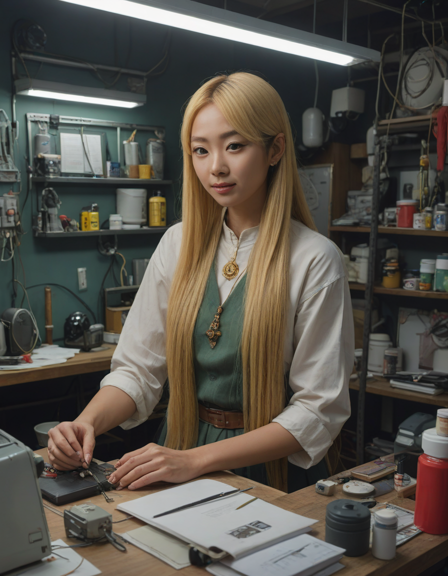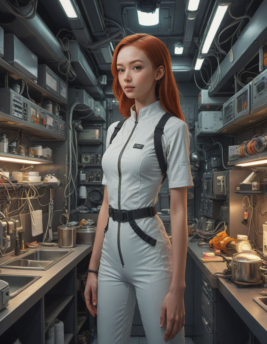 in a kitchen, Gear-filled tech... (4 loras merged)
