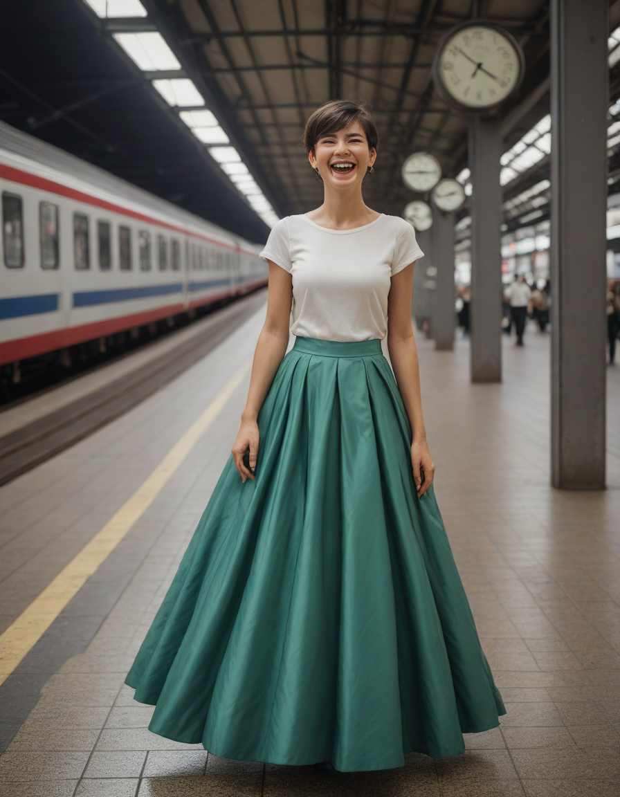 laughing, Wide Skirt, wide ballgown hem, a line skirt, petticoat skirt, , action