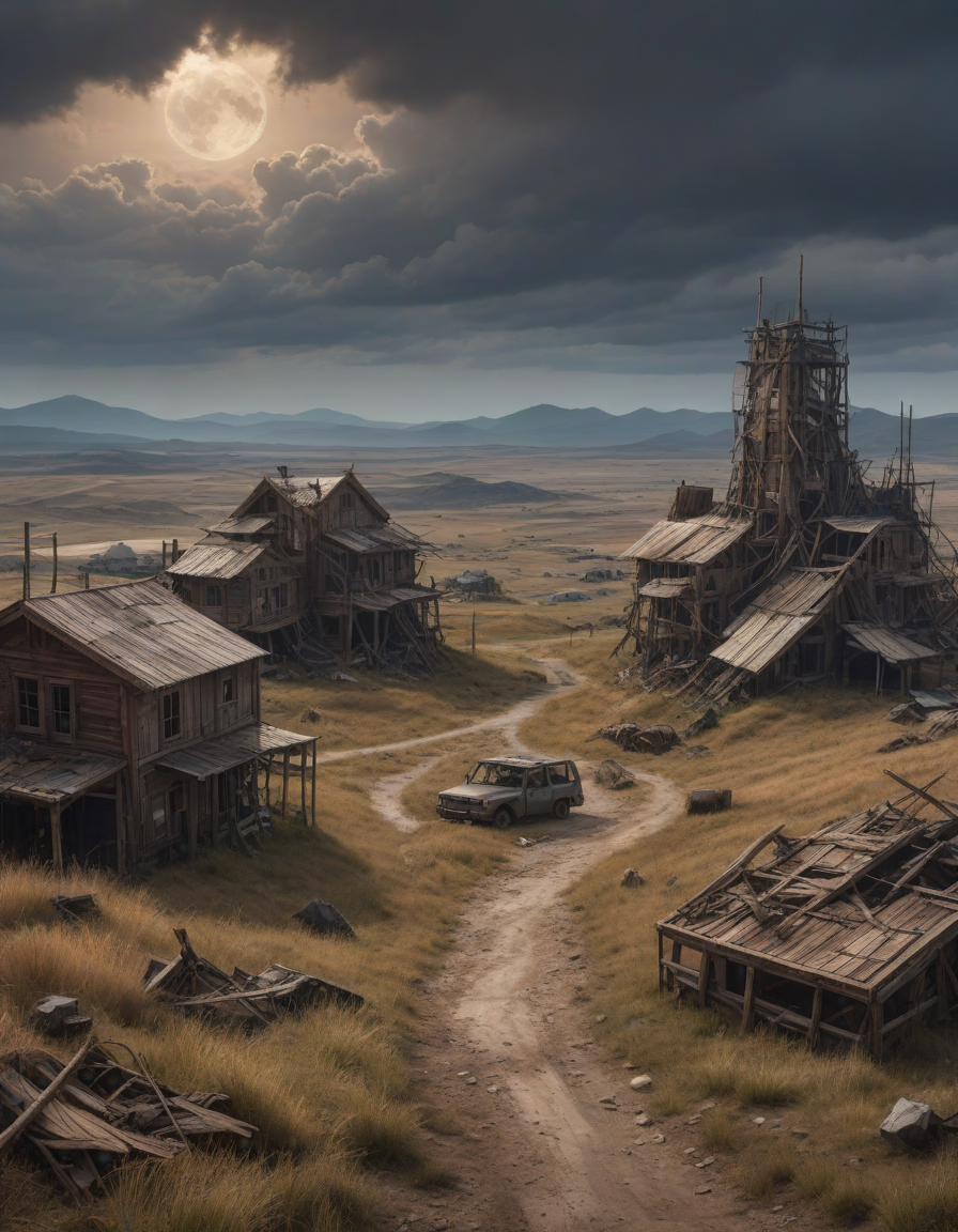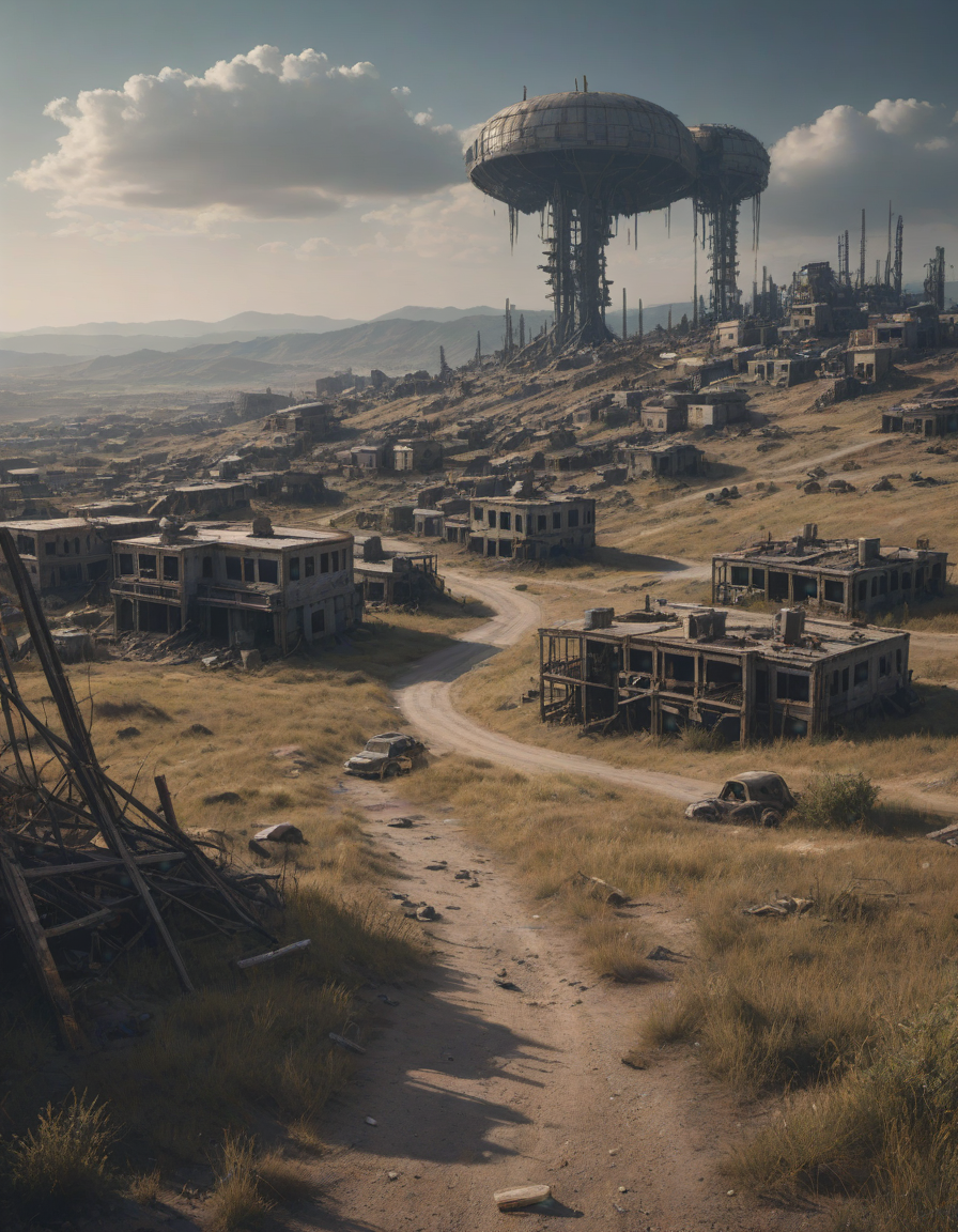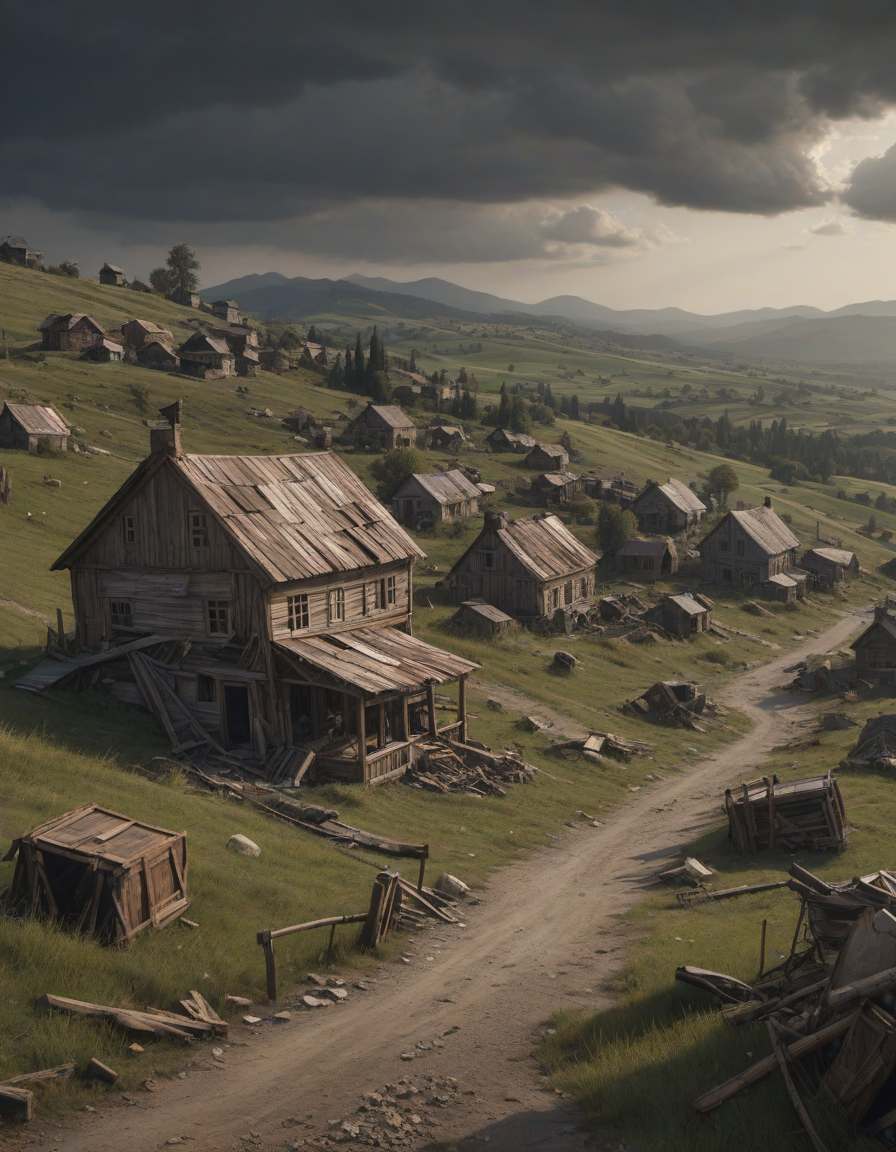rolling hills, post apocalypse, apocalyptic, pixel art, polished, rich 3D photorealistic rendering
