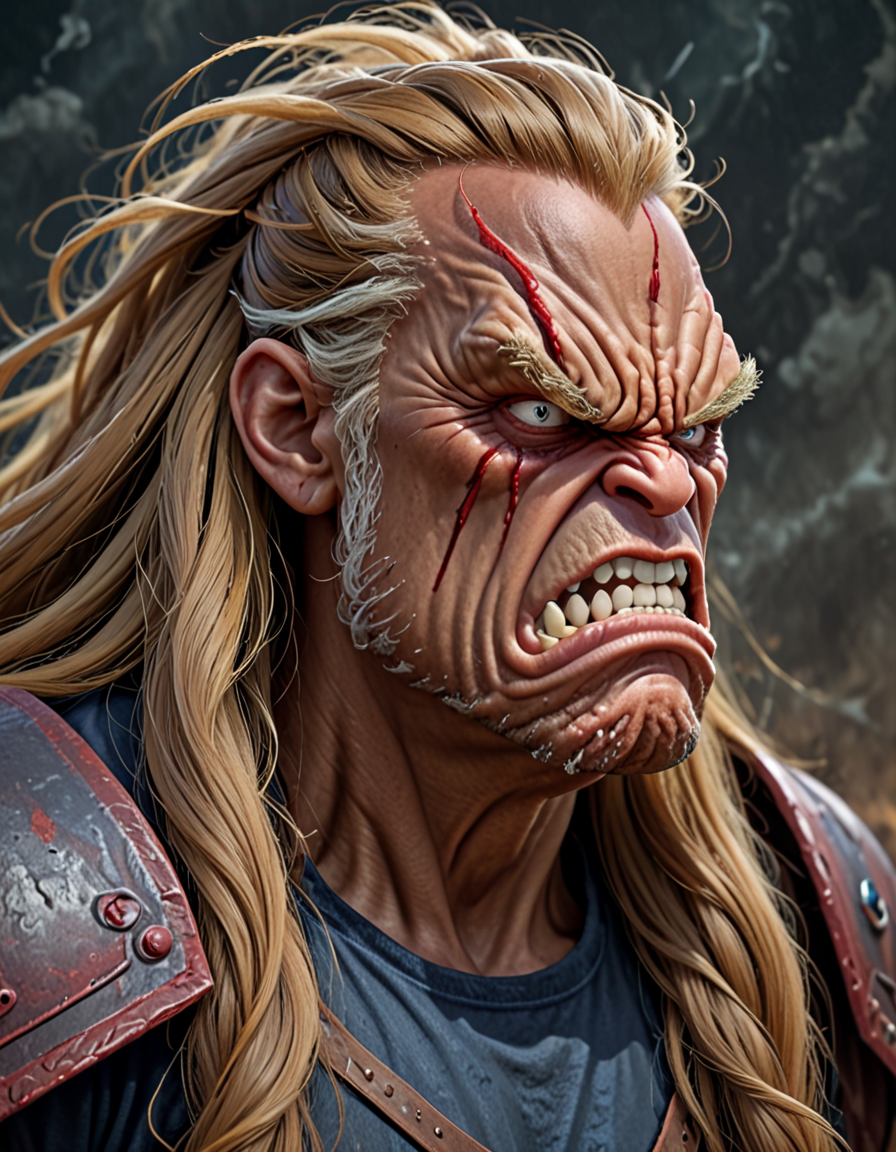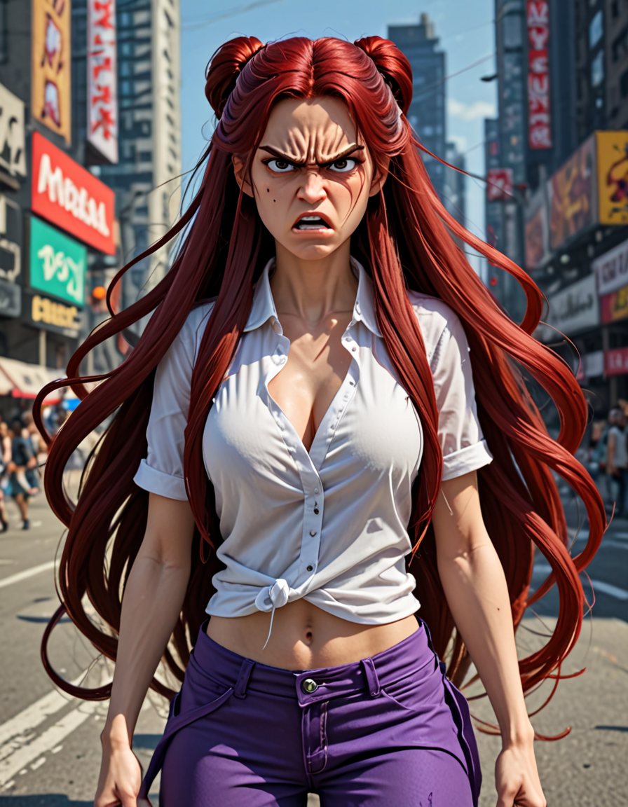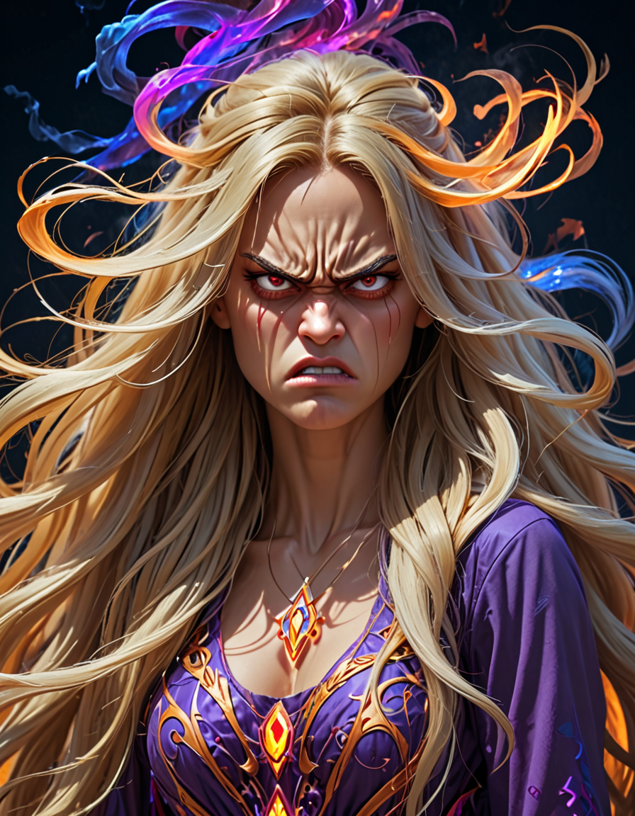 long flowy hair, angry (2 loras merged)