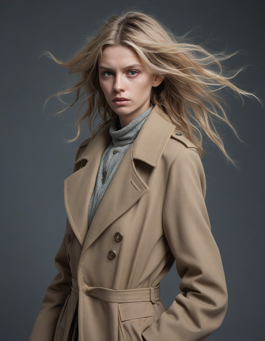 took too many drugs, wearing a heavy overcoat, lost in a trance, eyes glued to the horizon