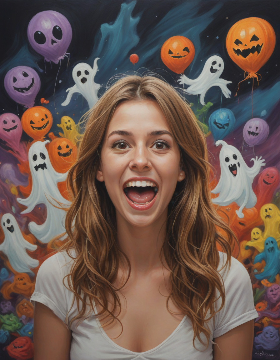 excited, spooky ghosts, Vivid oil paints