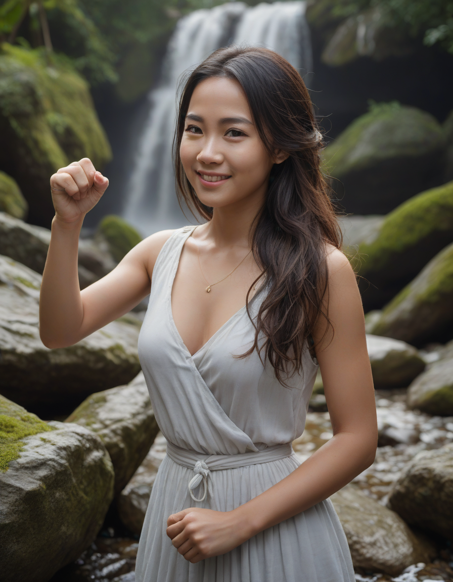 smiling faces, figurine, Chiseled features set in determination, fist raised in triumph
