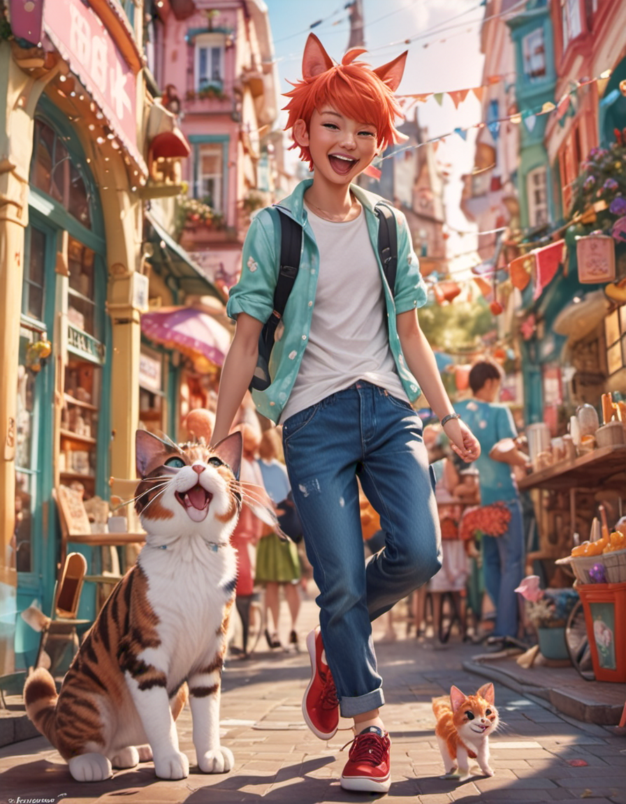 dark haunted woods, gnarled dead trees, eerie fog→whimsical fairytale forest, giant mushrooms, playful creatures