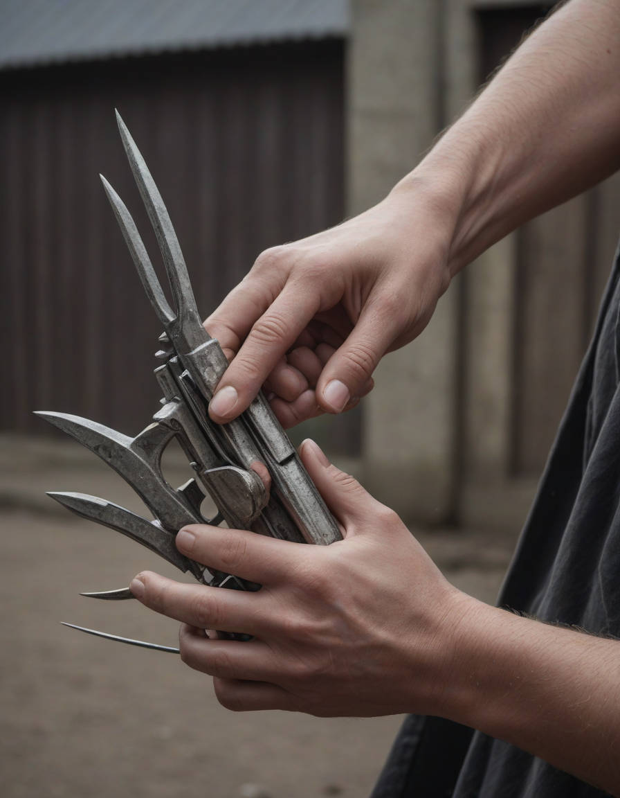 attention-grabbing, model, Trembling hands clutching a cold metal weapon