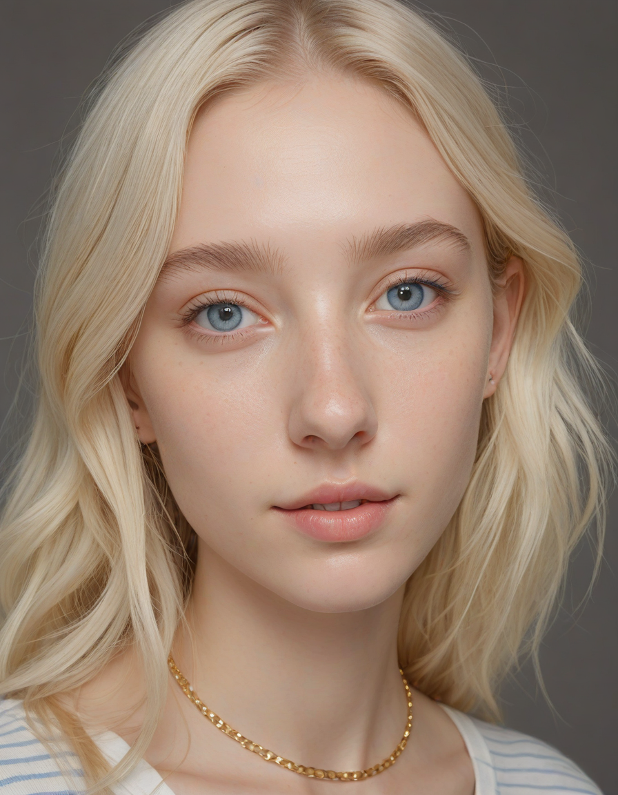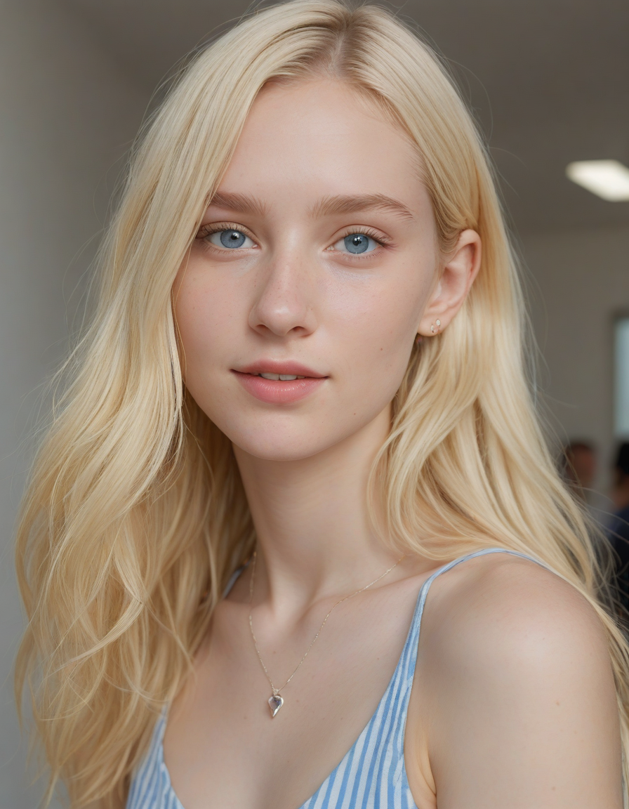 blue eye color, Visualize a photorealistic portrayal of an 18-year-old high school senior girl, epitomizing the e-girl aesthetic with a blend of internet culture's vibrancy and personal audacity. Clad in an oversized striped shirt under a black graphic t-shirt dress, her style is a testament to e-girl fashion's layered intricacy, complemented by fishnet tights and chunky boots. Her makeup features dramatic winged eyeliner, neon eyeshadow, and dark lipstick, with blush bringing her face to life. Accessories like silver chains and a heart pendant choker, along with pastel or neon hair streaks, enhance her playful rebellion. Standing hands-on-hips, she exudes confidence and individuality against a backdrop suggestive of e-girl life, with neon signs and string lights. This scene captures her bold identity and expressive spirit at this pivotal moment., like a sunny day at the beach, Ethereal alabaster complexion, translucent ivory skin, porcelain-like smoothness, luminescent pale hue, delicate alabaster sheen, almost translucent underlight, faint blush of ivory, pure alabaster glow, snowy complexion, pearl-like luminosity, ghostly pale radiance, frosty ivory undertones, silken alabaster surface, whisper of ivory color, milky alabaster texture, pristine ivory clarity, soft alabaster smoothness, radiant pale luminance, gossamer ivory veil, reflective alabaster brightness, light-catching pale sheen, velvet ivory softness, cool alabaster undertones, whisper-light ivory presence, crystalline alabaster purity,Very Pale, Albino, Alabaster skin, Ivory Skin,Highly detailed skin, visible goosebumps, scattered freckles, delicate veins, fine lines, pronounced pores, textured moles, subtle skin folds, defined laugh lines, clear skin texture, intricate birthmarks, soft peach fuzz, natural skin sheen, evident skin elasticity, detailed skin pigmentation, radiant skin highlights, distinct skin dimples, nuanced skin tones, refined skin contours, expressive facial expressions, vivid skin patterns, dynamic skin shades, enhanced skin clarity, micro-textural detail, glowing skin underlight, sharp shadow contours, tactile skin surface, luminous skin reflections, vibrant skin undertones, sculpted cheekbones, detailed nasolabial folds, crisp eyebrow hairs, smooth skin gradients, precise skin imperfections, noticeable eyelid texture, defined lip wrinkles, highlighted skin hydration, visible skin health, tactile warmth of skin, delicate skin imperfections, rich skin saturation, multidimensional skin layers, palpable skin vitality, feeling great, stifling laughter in a grand library