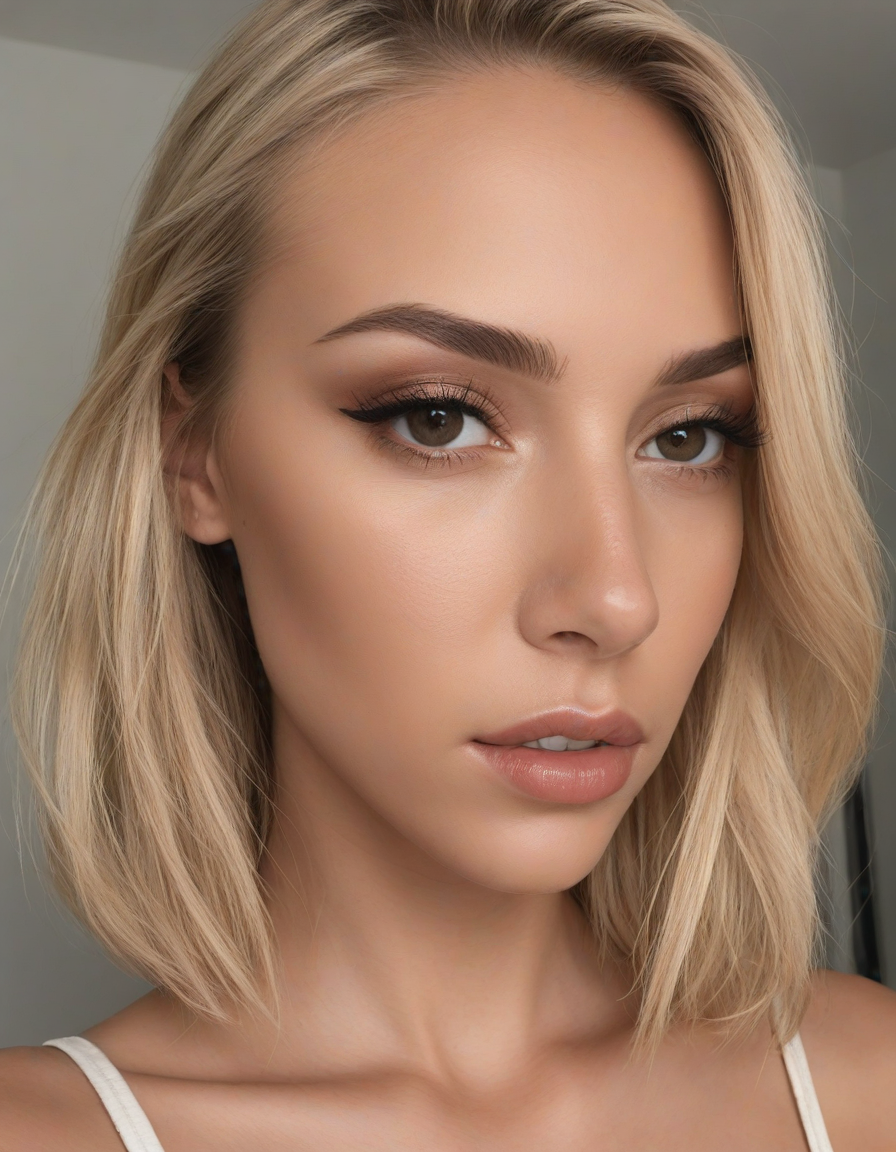 18yo, 18 year old, Glamorous full-coverage foundation, high-gloss lip finish, dramatic eyelash extensions, deep contouring, bronzed skin glow, smoky eye effect, nude lip shades, defined eyebrow arches, shimmering eyeshadow, luxurious false lashes, precision lip contouring, radiant cheek highlight, voluminous hair effect in makeup, plump lip enhancement, classic winged eyeliner, soft-focus skin finish, meticulous face sculpting, sparkling eye accents, meticulous eyebrow definition, vibrant blush placement, sultry eye makeup, flawless skin illusion, high-definition makeup, polished aesthetic finish, celebrity-inspired glamour, egirl makeup, dolly makeup, , deft movements, superhero, Great desperation, fit