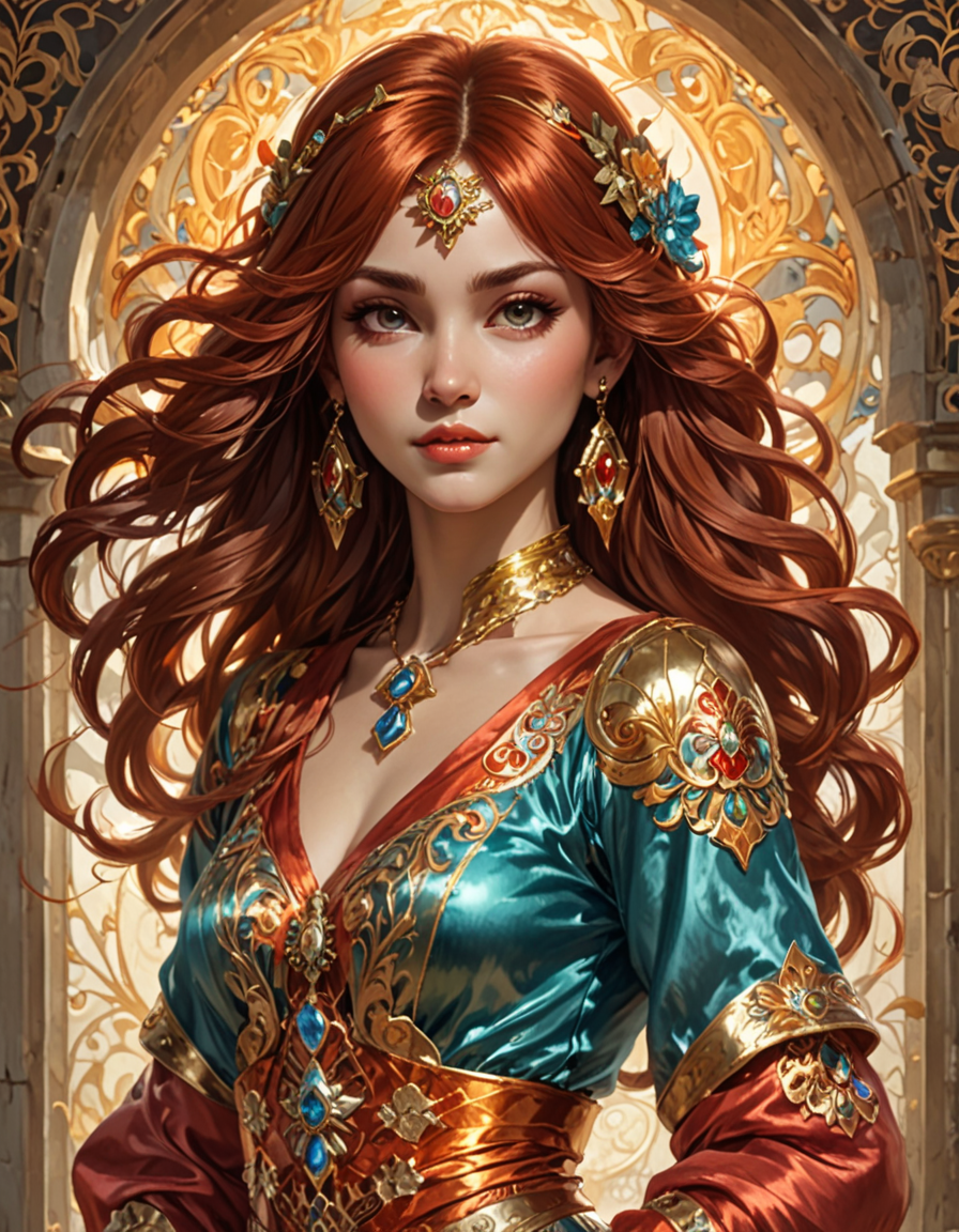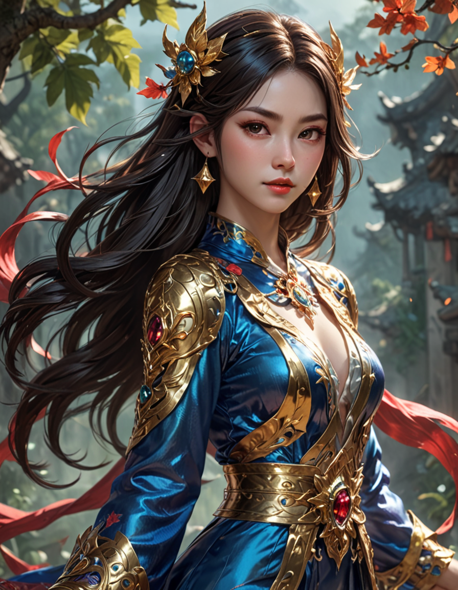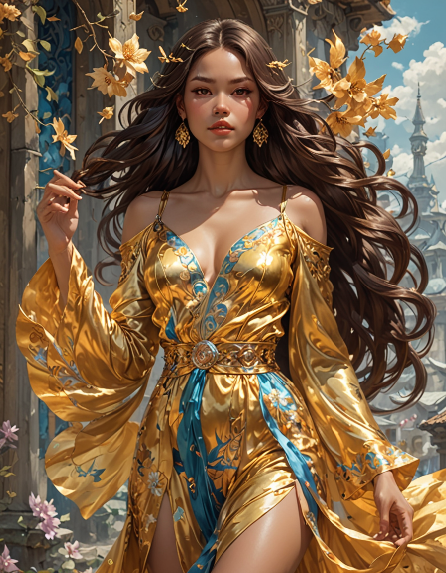 fantasy setting, billowing sil...