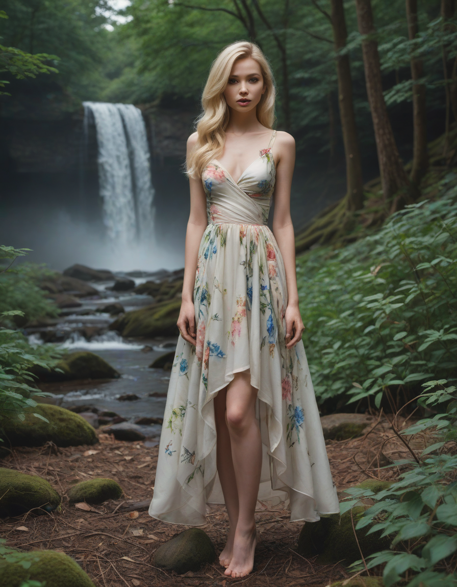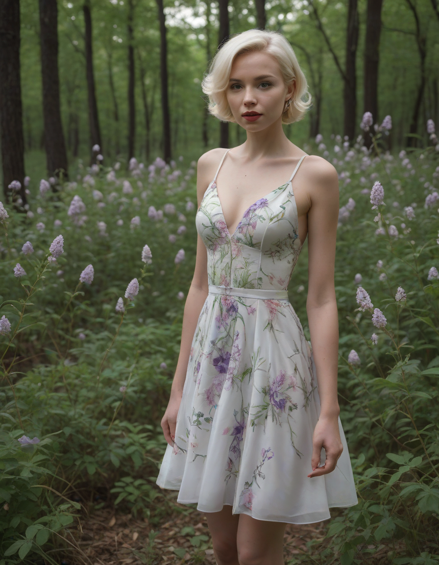 woodland wildflowers, elegant, Marilyn Monroe-inspired cocktail dress, super hero, drone photography, Projected, frozen in fear