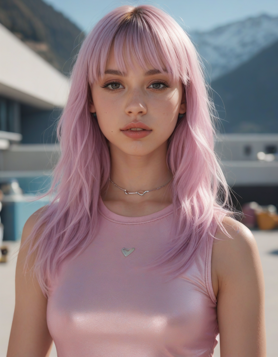 This visualization retains the essence of our previous description, now enhanced by a pose that speaks volumes of her confidence and the vibrant spirit of the e-girl aesthetic. It captures not just the photorealistic image of a young woman in the throes of digital age culture but also the bold statement of identity and self-expression that defines her at this significant moment in her life.