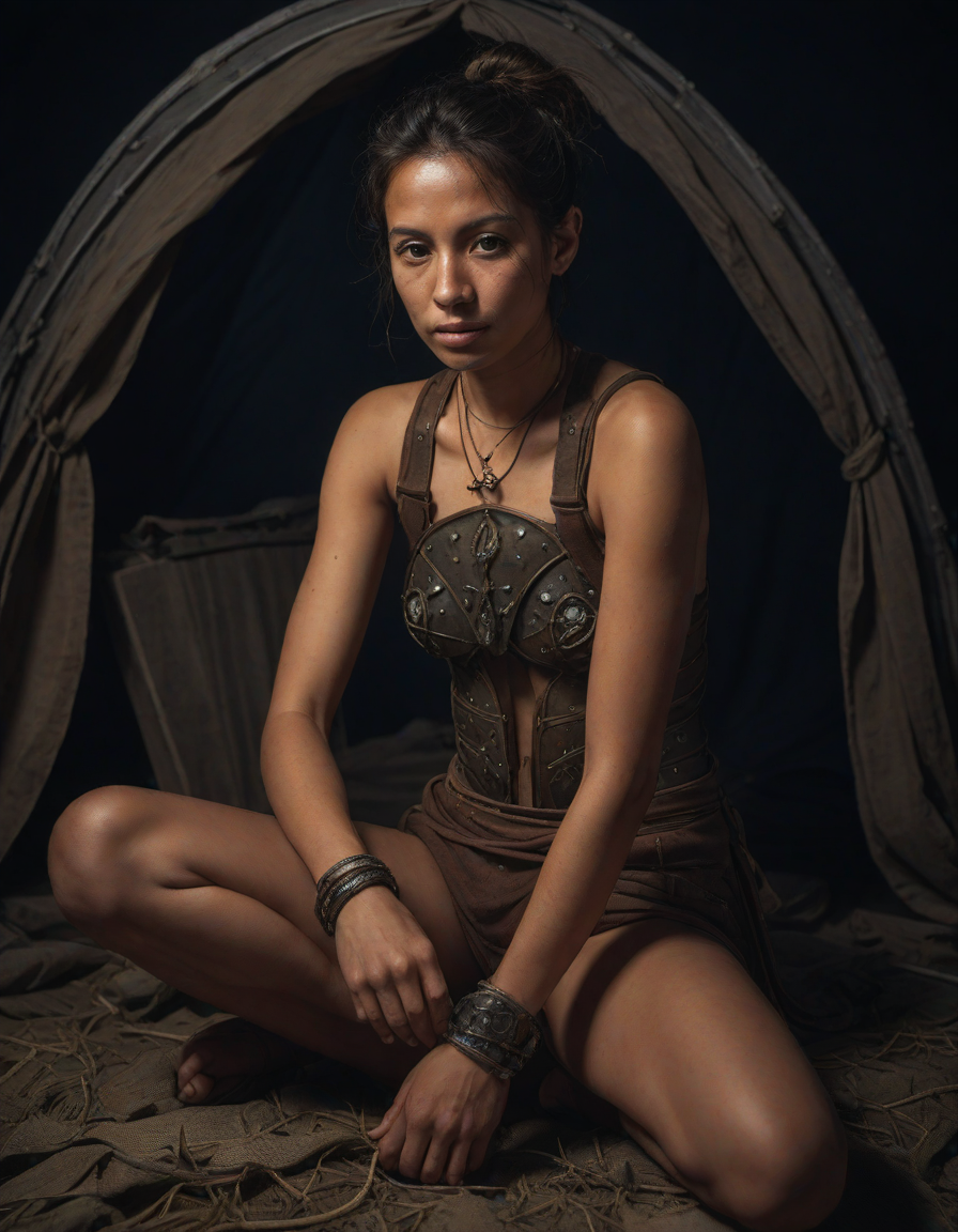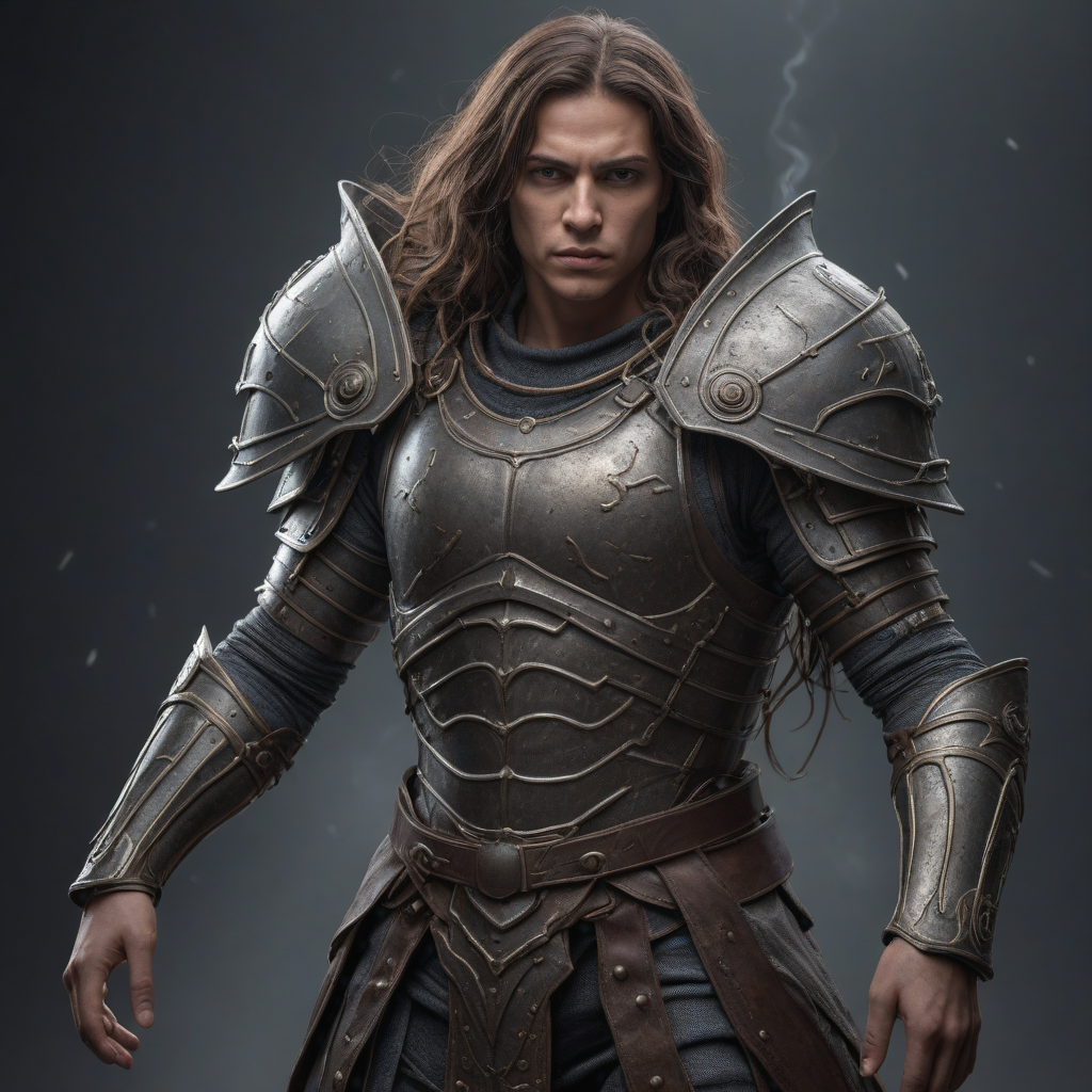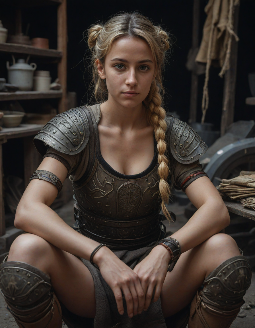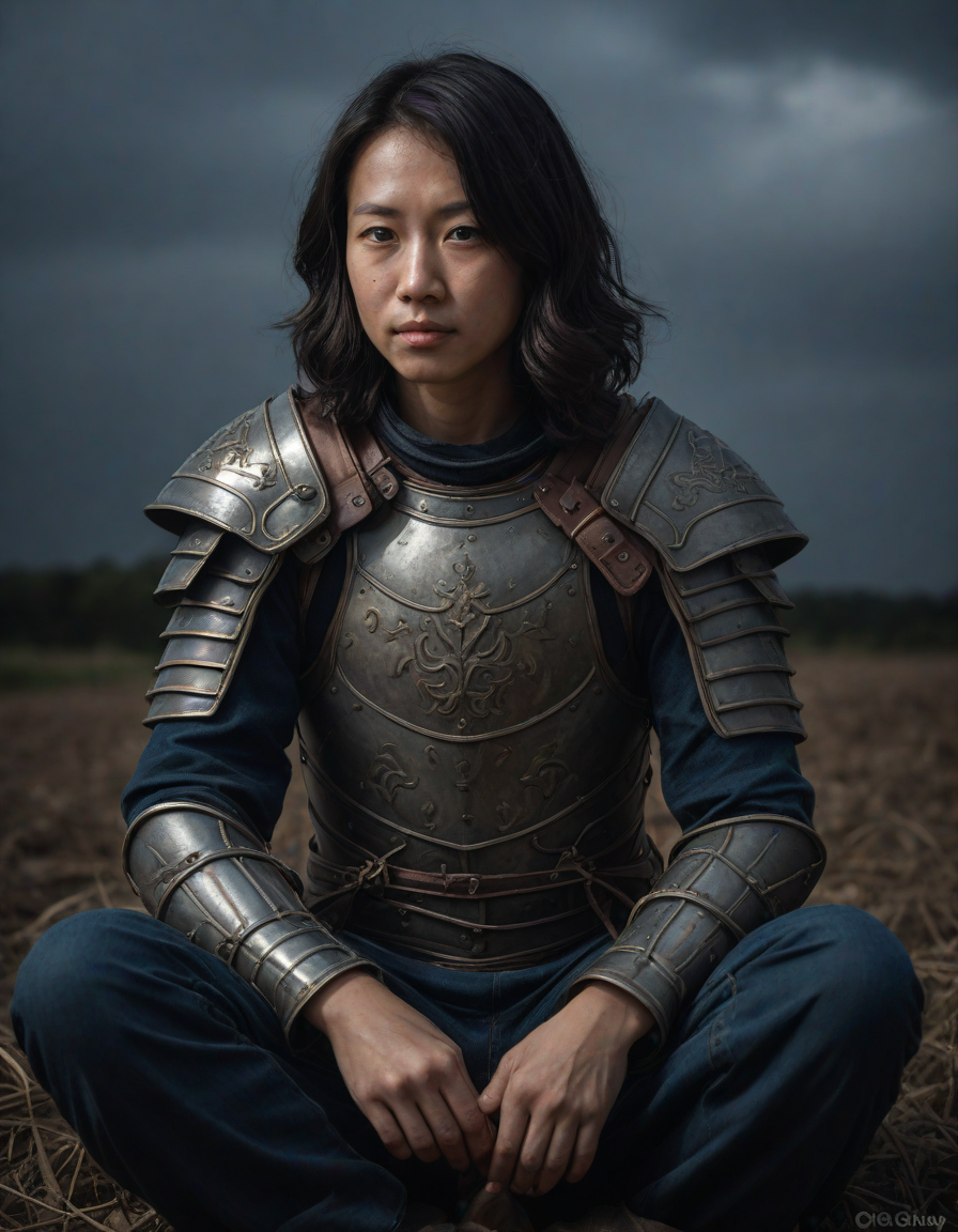 time lapse photography, fit, wearing heavy armor, sitting in darkness