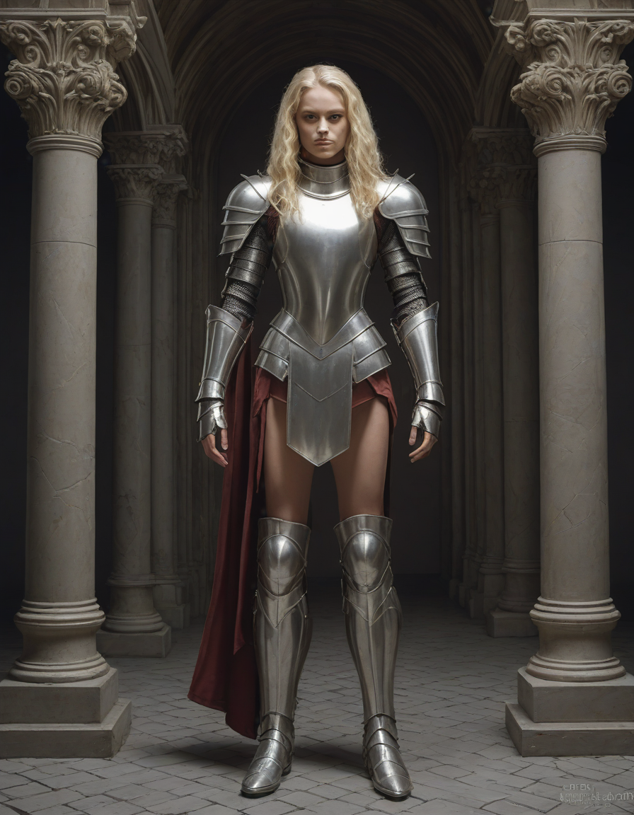 wearing sleeveless leotard, wearing one peice clothing, leotard, sleeveless, , tall woman, wearing complete set of armor, wearing full armor, Wearing chest armor, wearing leg armor, wearing feet armor, wearing bracer, wearing pauldrons, Wearing helmet, Wearing breastplate, Wearing gauntlets, Wearing greaves, Wearing pauldrons, Wearing vambraces, Wearing cuisses, Wearing sabatons, Wearing gorget, Wearing tassets, Wearing bracers, Wearing cuirass, Wearing faulds, Wearing plackart, Wearing spaulders, Wearing besagews