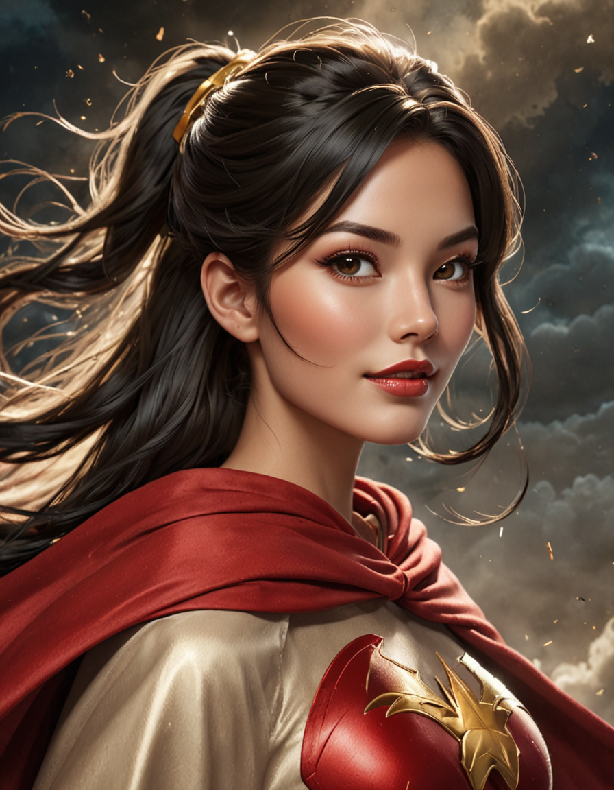 awkward uncomfortable pose, fidgeting nervously, hunched shoulders→confident superhero pose, hands on hips, billowing cape