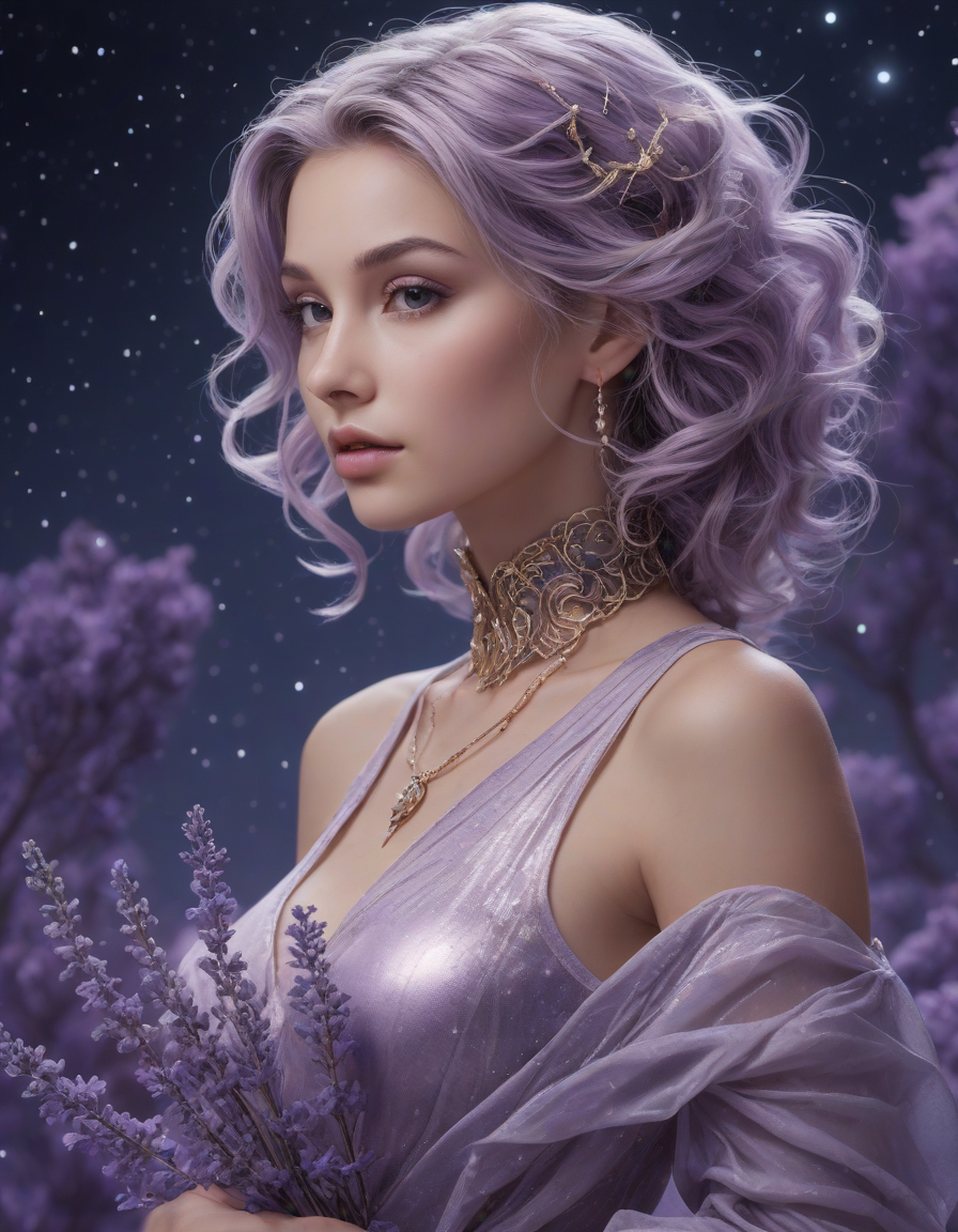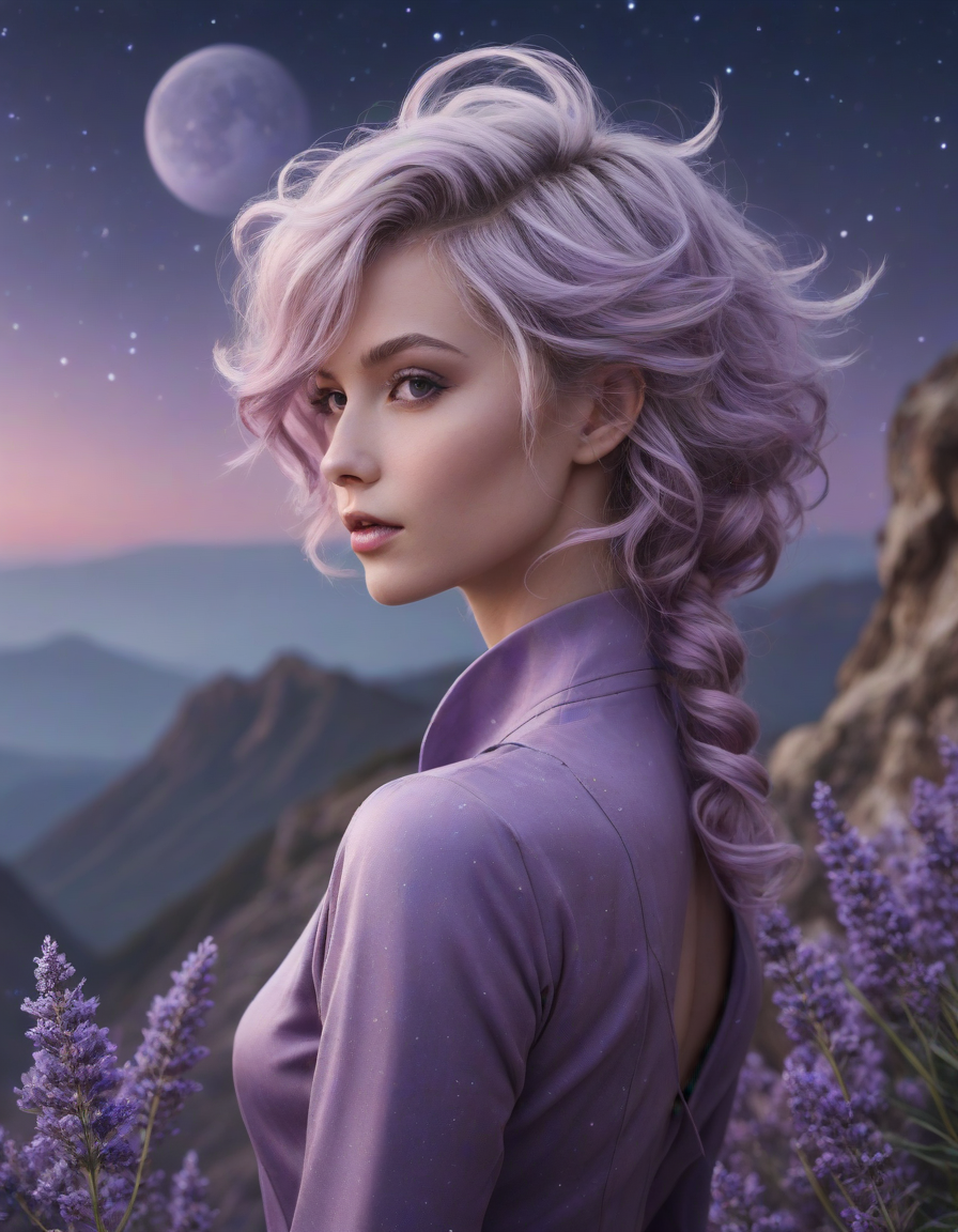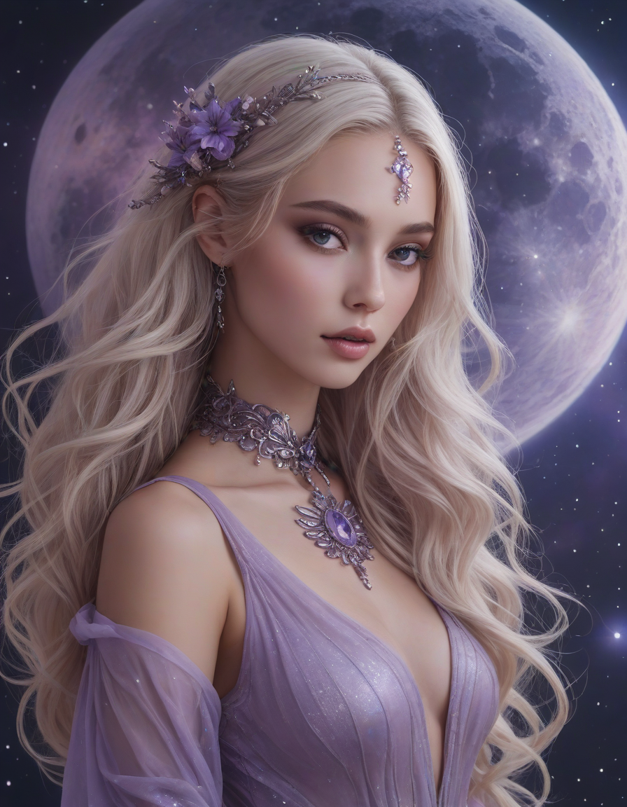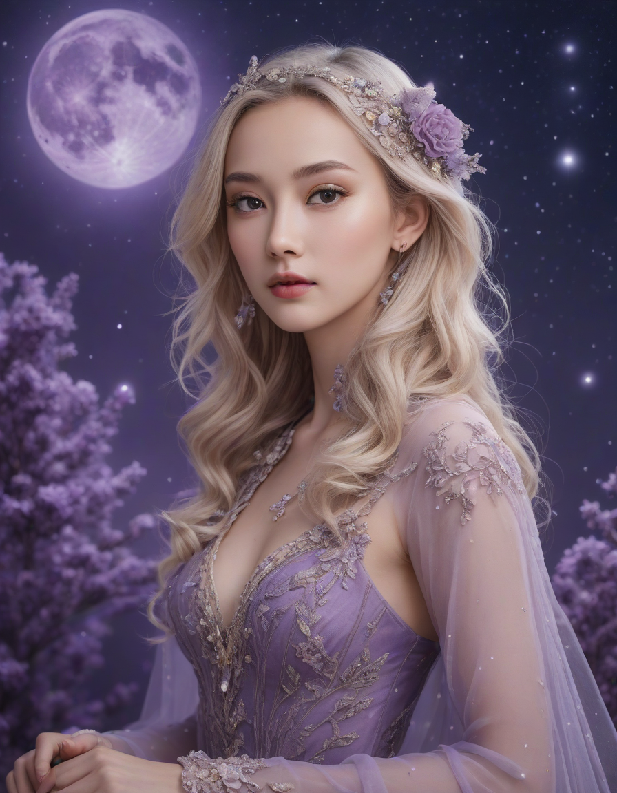smart,intelligent, absurdly beautiful, moon elf, Lavender nebula