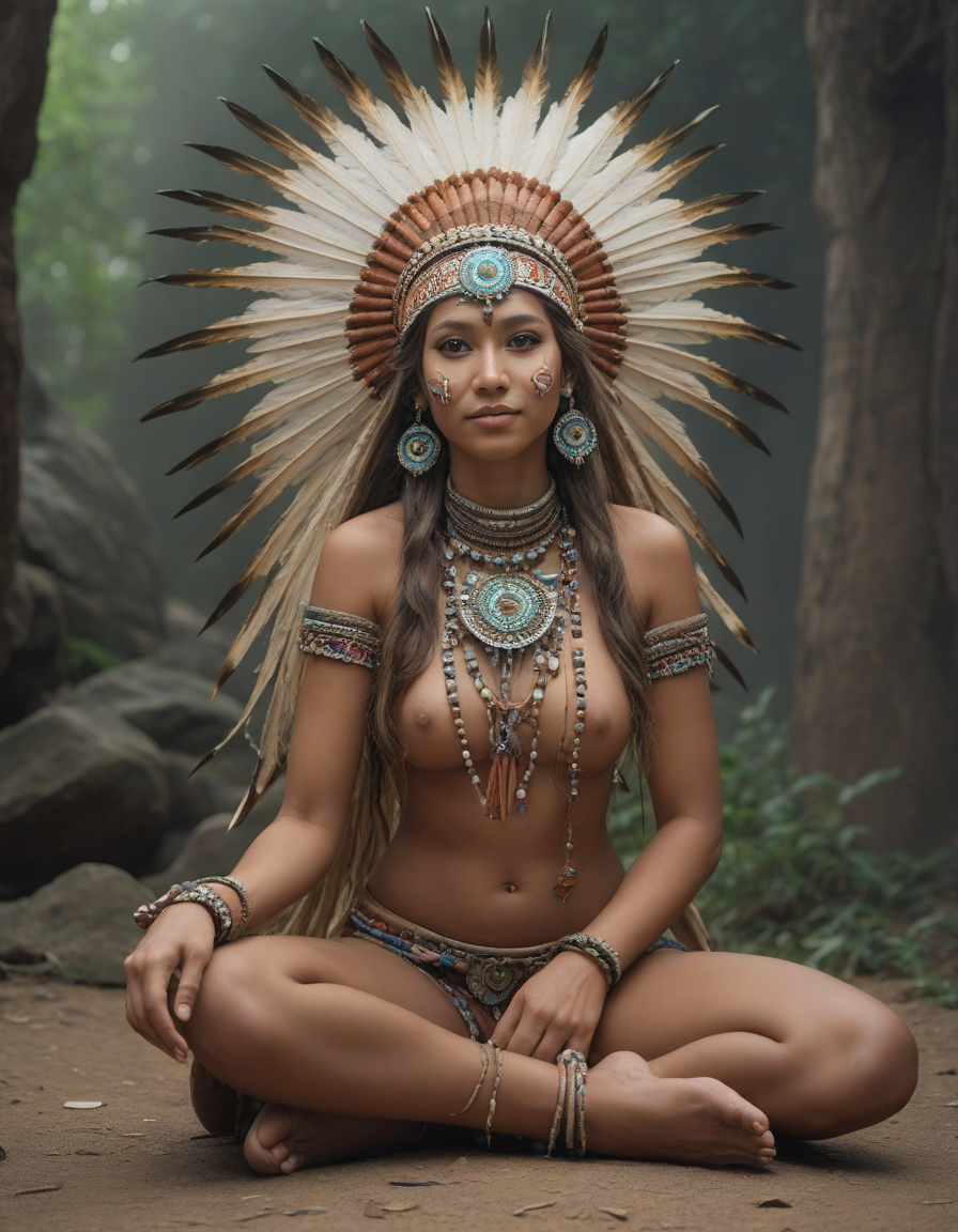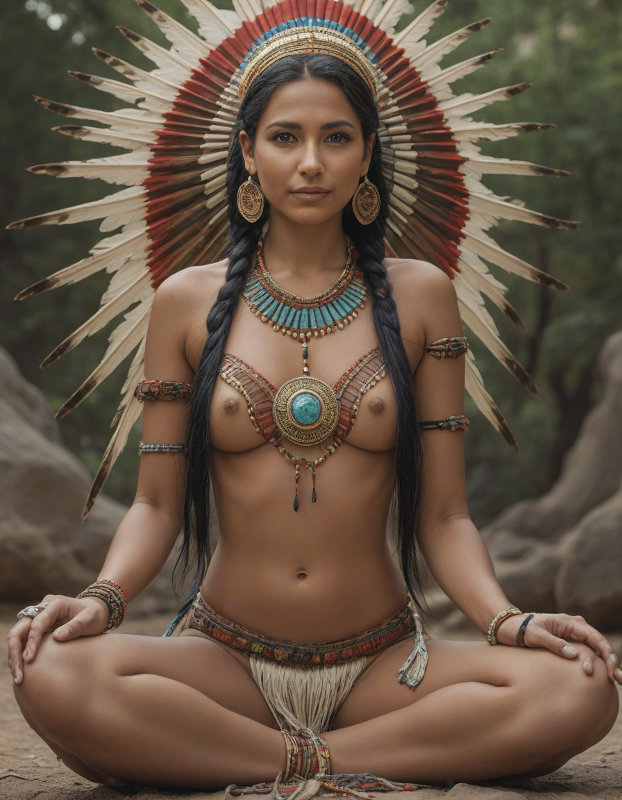 american indian, kneeling before goddess, looking at viewer, extremely extremely aesthetic, successful, is pretty, love, laughing hysterically