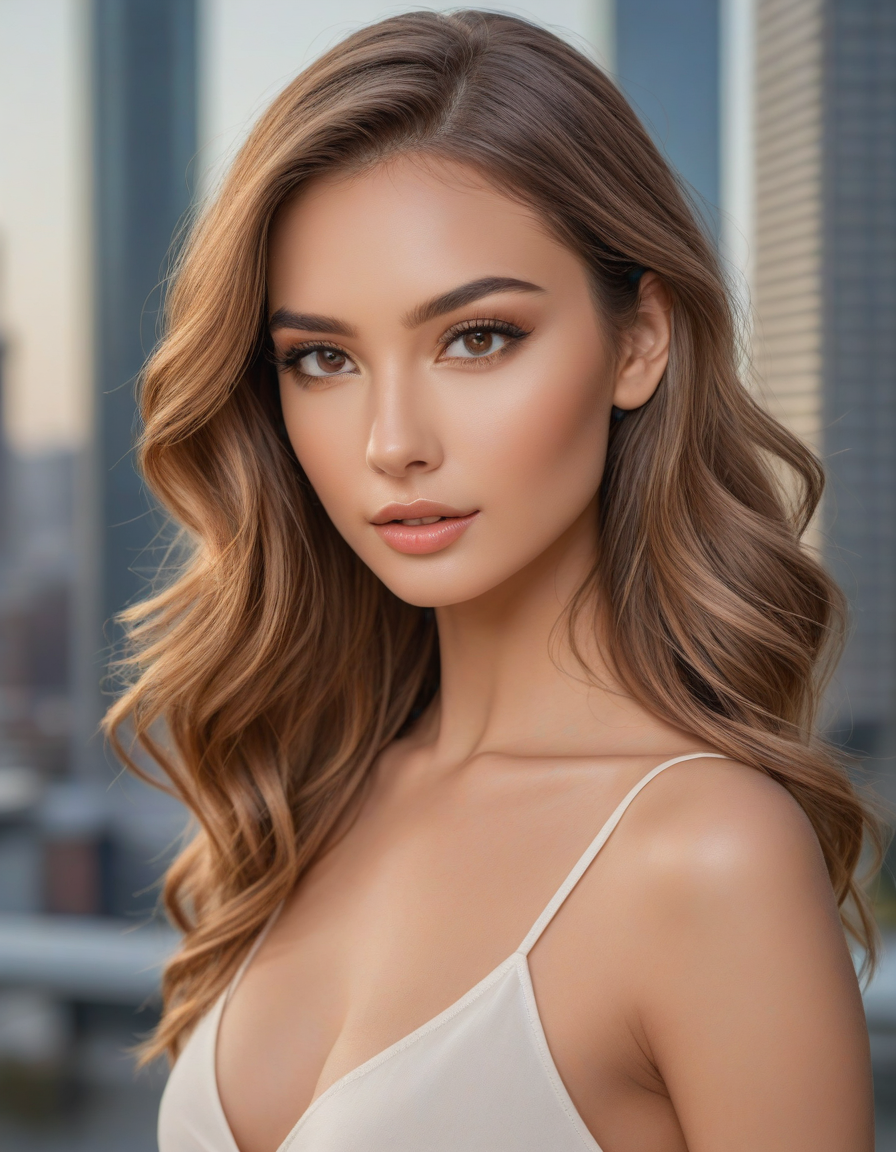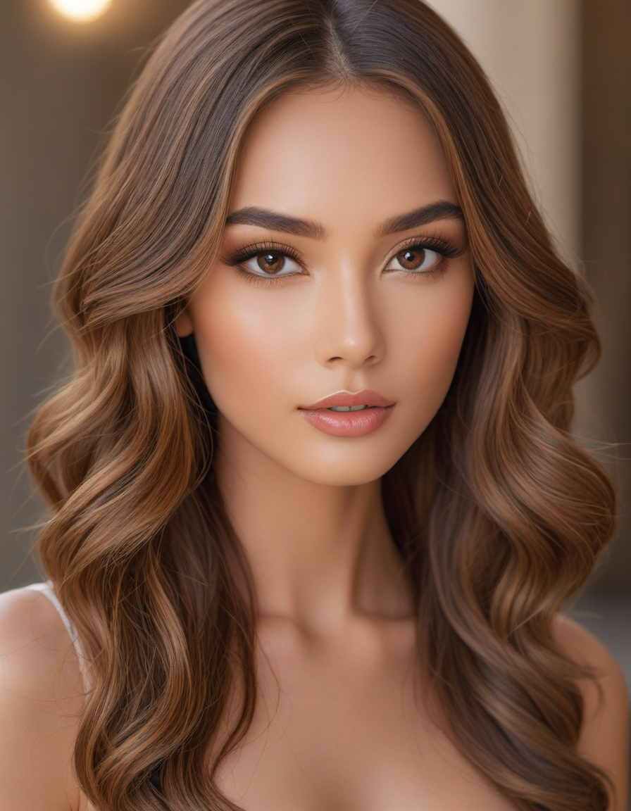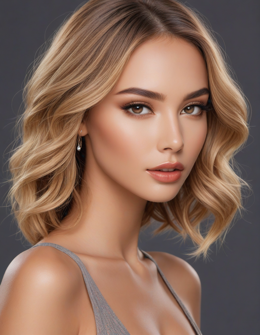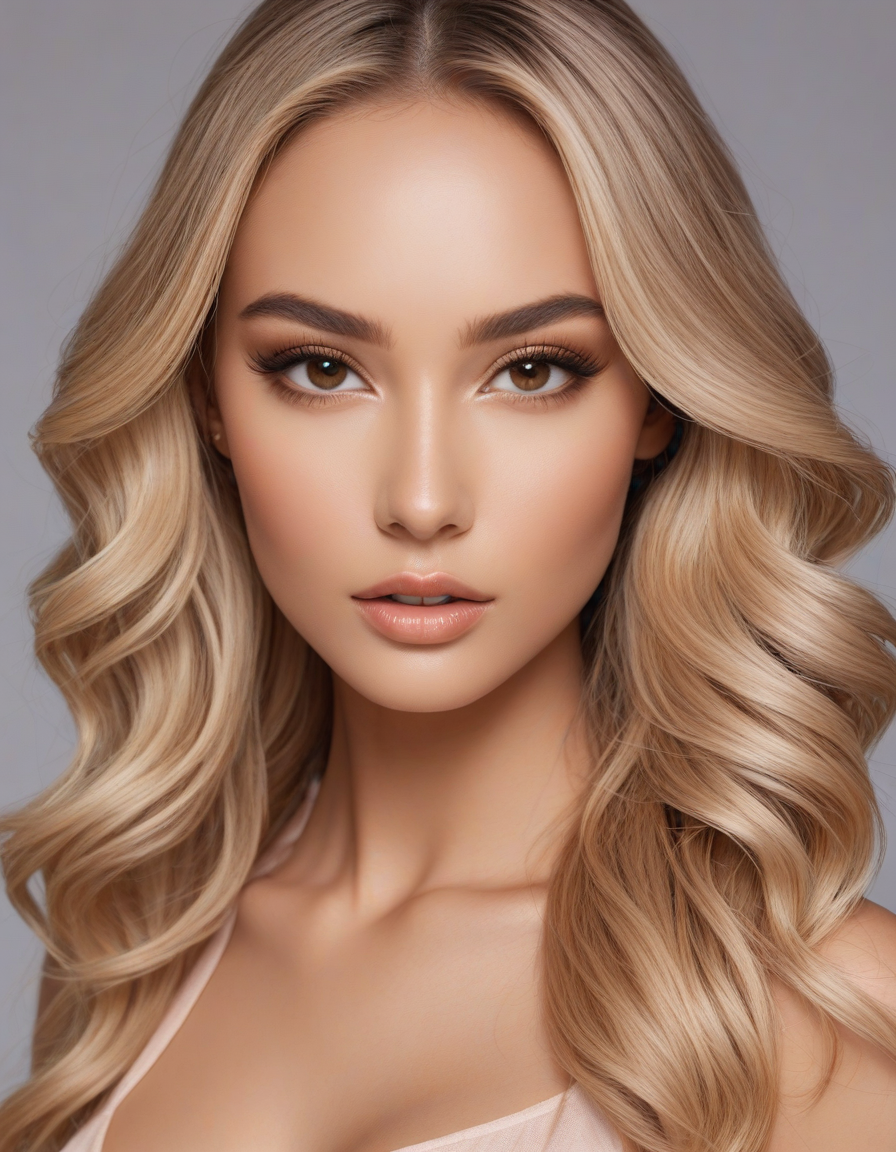 attractive, High-arched eyebrows, almond-shaped eyes, long and curled eyelashes, symmetrical eye spacing, radiant under-eye area, smooth eyelids, clear and luminous skin, high and pronounced cheekbones, soft and rounded cheeks, delicate jawline, defined chin contour, small and straight nose, narrow nose bridge, symmetrical nostrils, petite nostril size, full and curved upper lip, plump and rounded lower lip, well-defined cupid's bow, even lip spacing, soft and glowing complexion, subtle and natural face contour, harmonious facial symmetry, balanced facial proportions, slender neck, graceful collarbones, captivating smile, mesmerizing gaze, soft and silky hair, voluminous hair texture, elegant hair waves, striking hair length, glossy hair sheen, sculpted hairline, bewitching hair color, radiant hair highlights, timeless beauty appeal, magnetic personality shine, flawless makeup application, perfect skin texture, impeccable style and grace, pronounced facial angles, signature beauty marks, vibrant skin tone, expressive and lively eyes, enchanting eyelid crease, classic beauty profile, iconic bombshell figure, aesthetically pleasing facial features, refined elegance in appearance, alluring facial expression, distinguished by beauty and charm