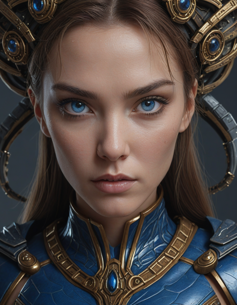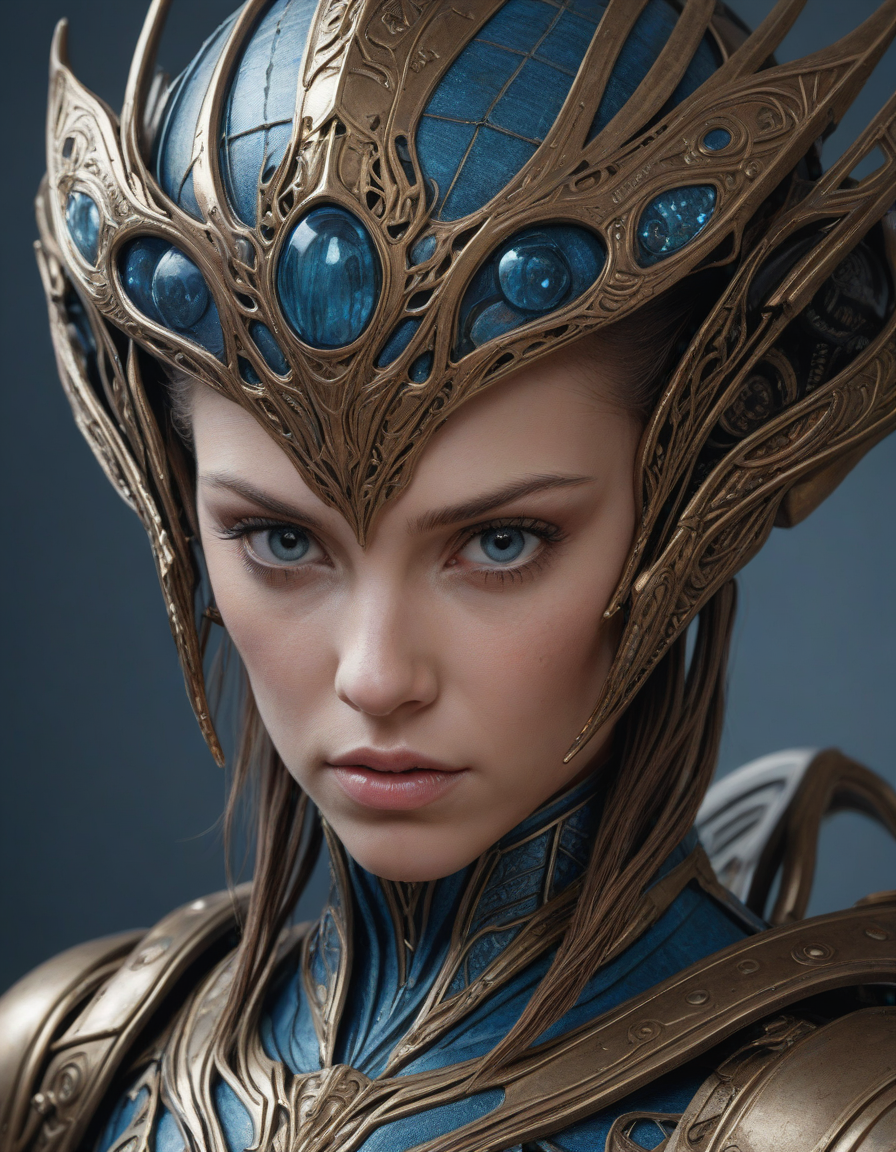 legendary, armor-clad hero, pop art, static, still life, captivating, Immaculately Tidy, Grunting for control, an absurdly beautiful, otherworldly individual, blue-iris-color, blue-eye-color, highly detailed eyes, highly detailed iris, realistic iris detail, highly detailed sclera, highly detailed pupil, highly detailed limbal ring, , alien, Glorious, Looking up, Curiosity piqued