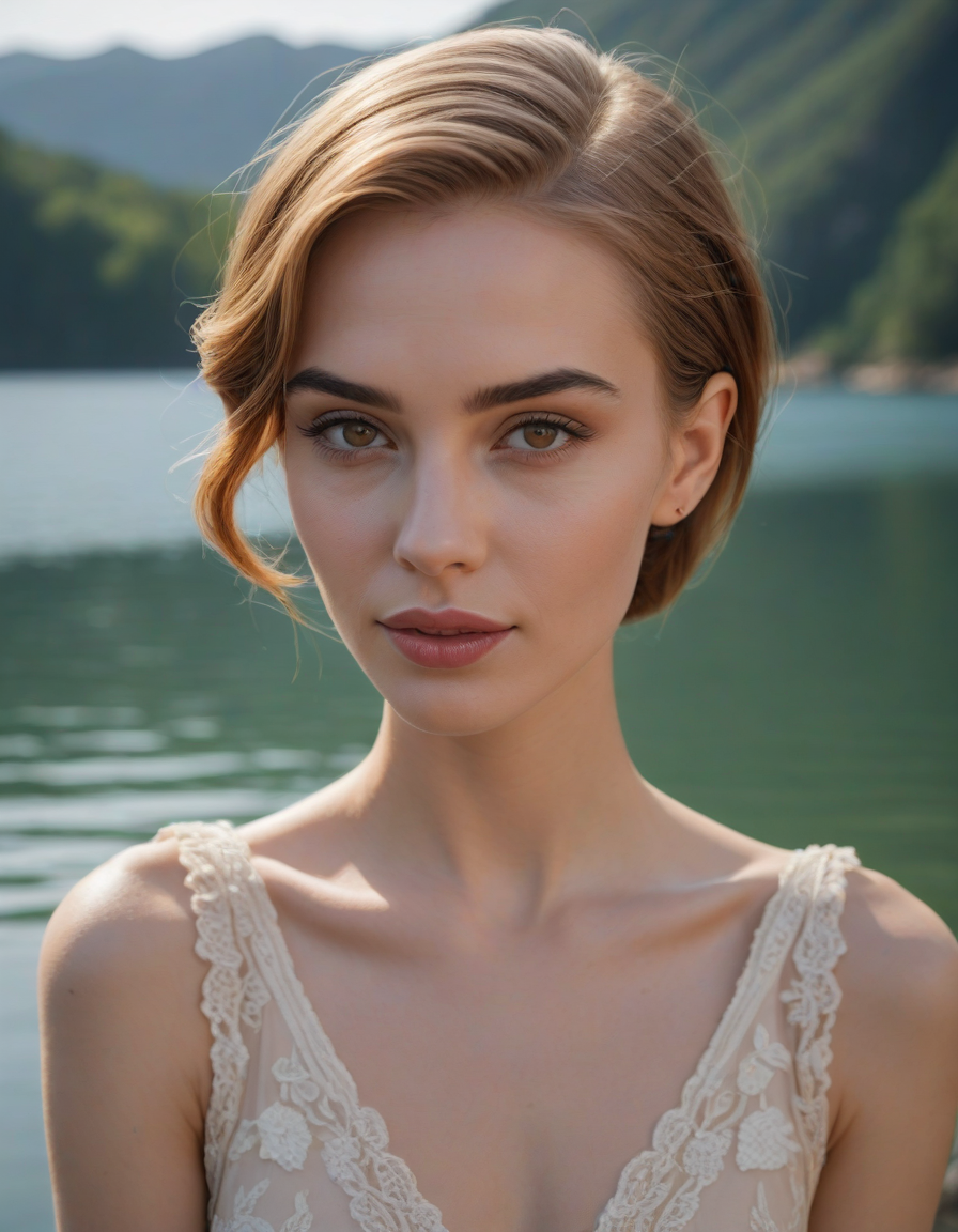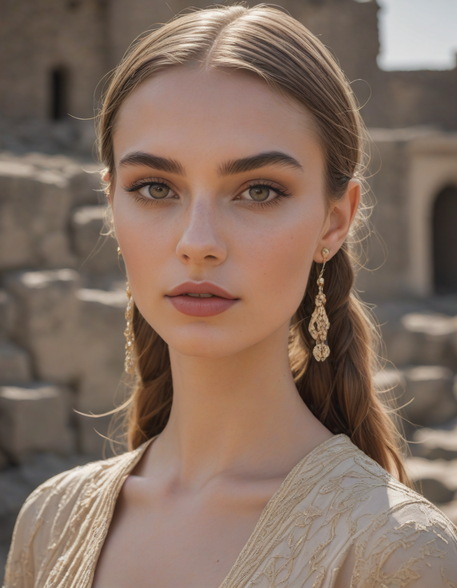 designer vintage wear, high-arched eyebrows, pronounced cheekbones, full lips, narrow facial structure, small chin, pointed nose tip, deep-set eyes, prominent jawline, smooth forehead, elongated face shape, subtle eye creases, thin nose bridge, voluminous cheek appearance, defined lip contour, sculpted facial silhouette, soft nasolabial folds, high forehead, delicate ear shape, refined jaw angle, sleek facial contour, Caucasian American Girl, Bimbo Facial Features, Barbie-esque Facial Features, british, pale, 18yo, 18 year old, young, youthful,