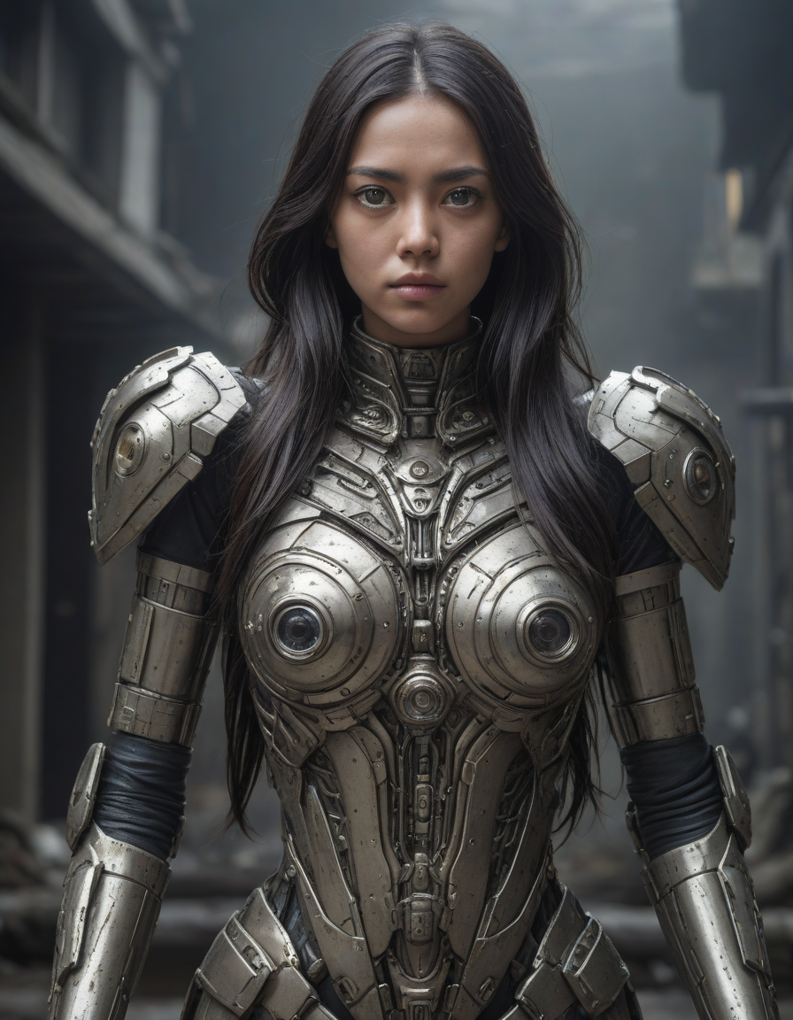 eyes fixated in horror, sparkling eyes glistening, Giant robot looming