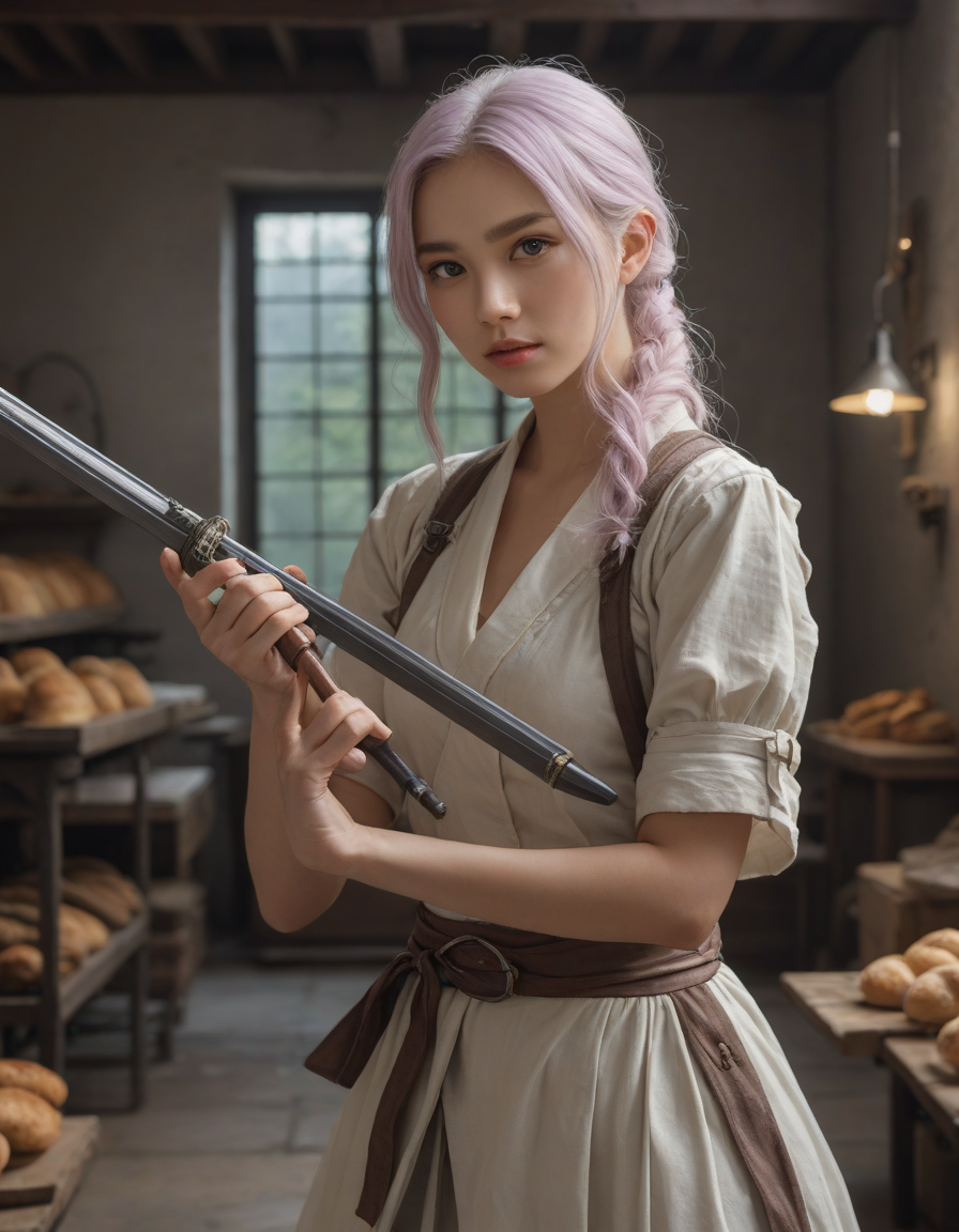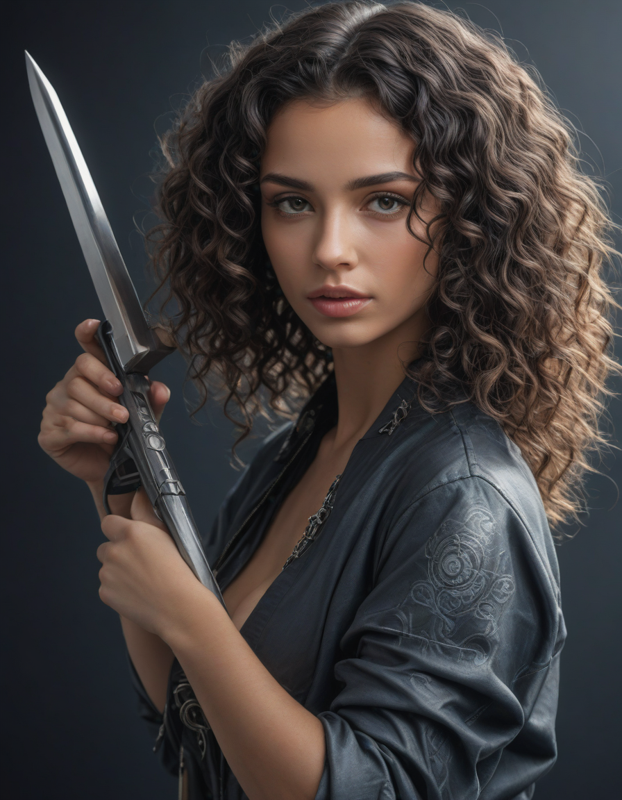 weilding a one-handed weapon in both hands, one-handed weapon, weapon, , fantasy