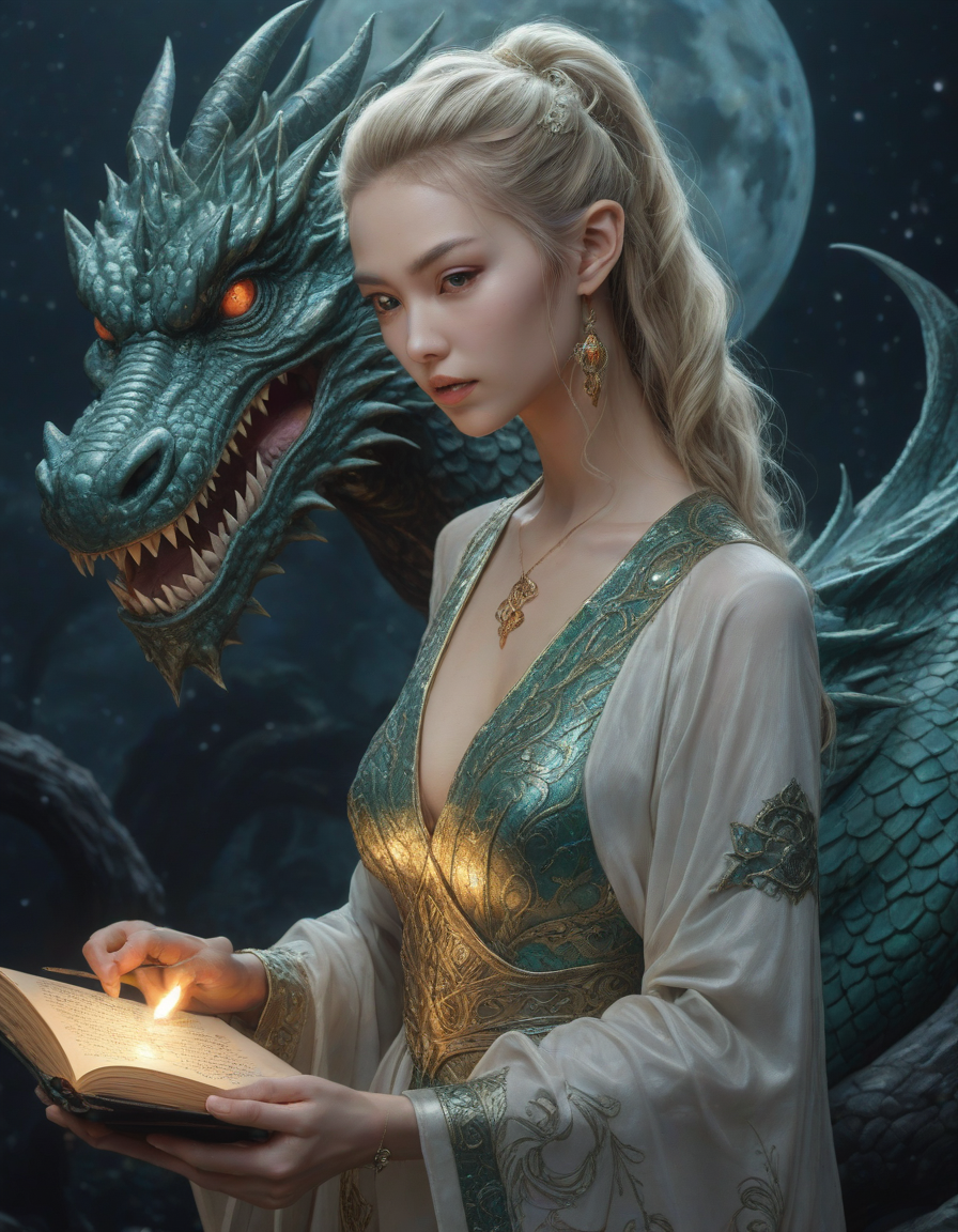 dragon from another world, Glistening in moonlight, mighty sorcerer, vengeful spirits